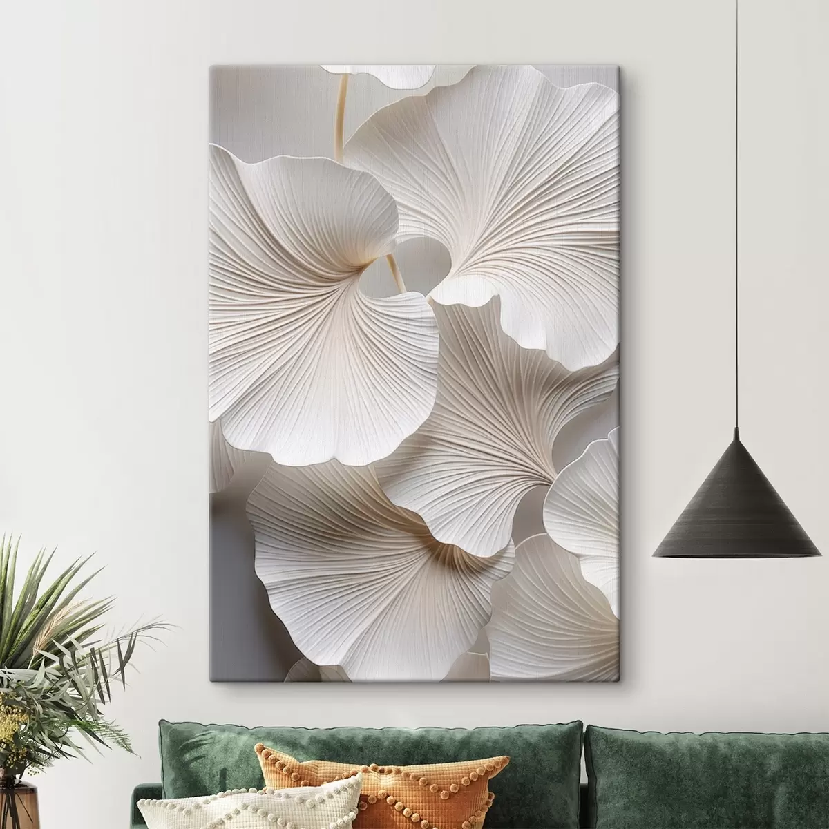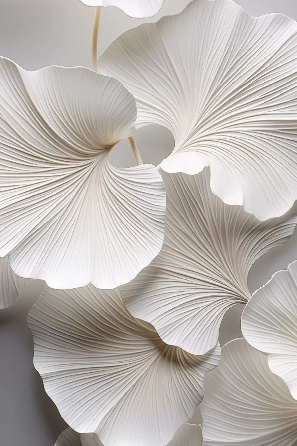 wall murals White ginkgo biloba leaves with detailed veins, soft lighting, textured elegant and minimalist design s46705