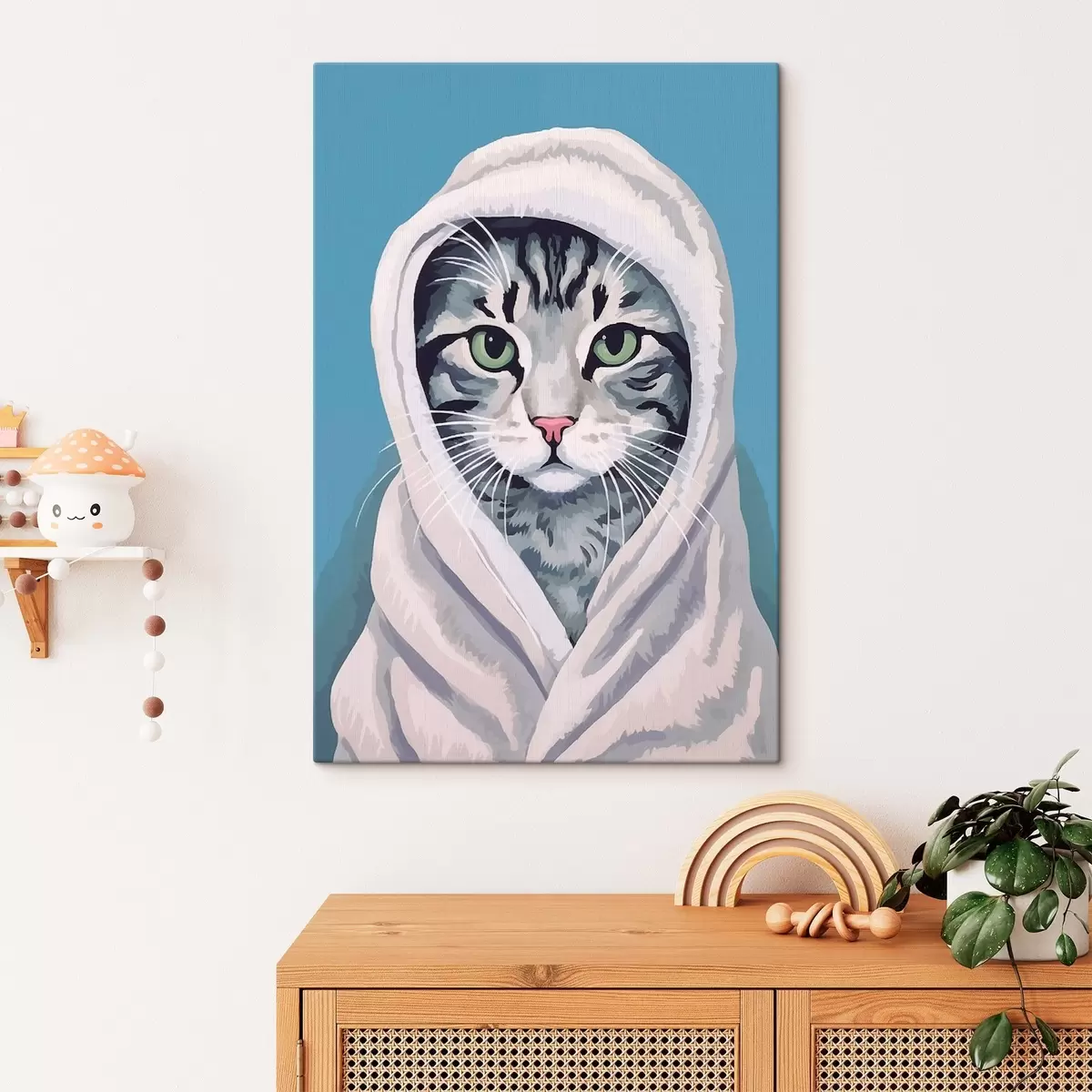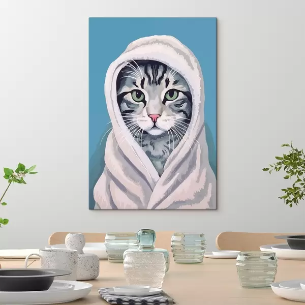 wall murals Striped cat in a white towel s46740