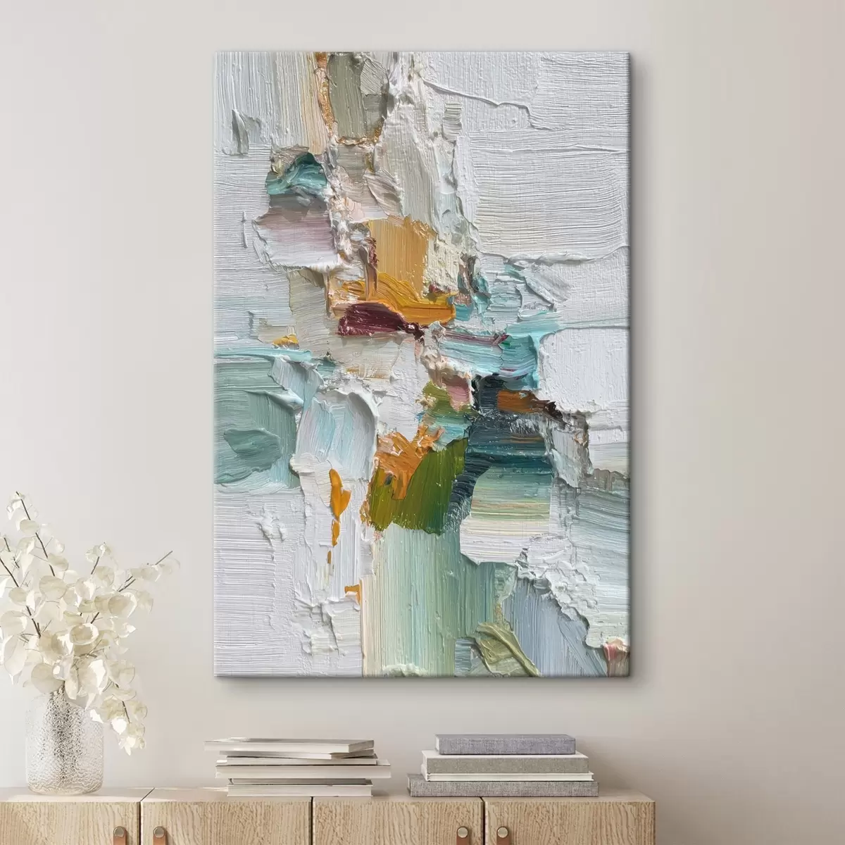 wall murals Composition with turquoise and orange accents in oil painting style s46958