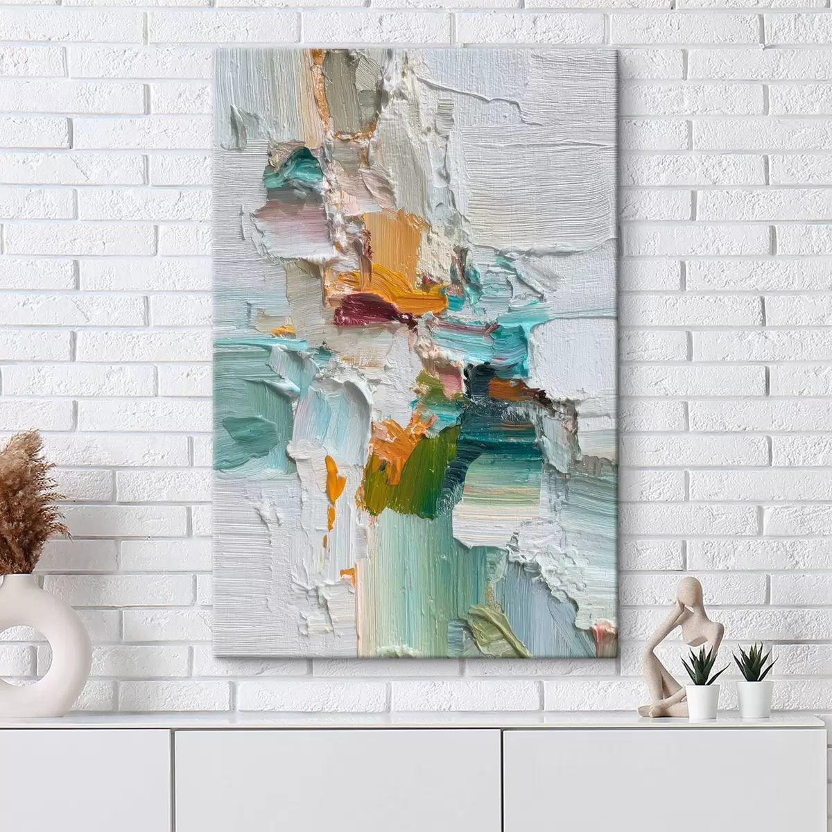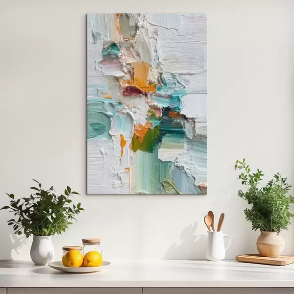 Picture Composition with turquoise and orange accents in oil painting style Nr s46958