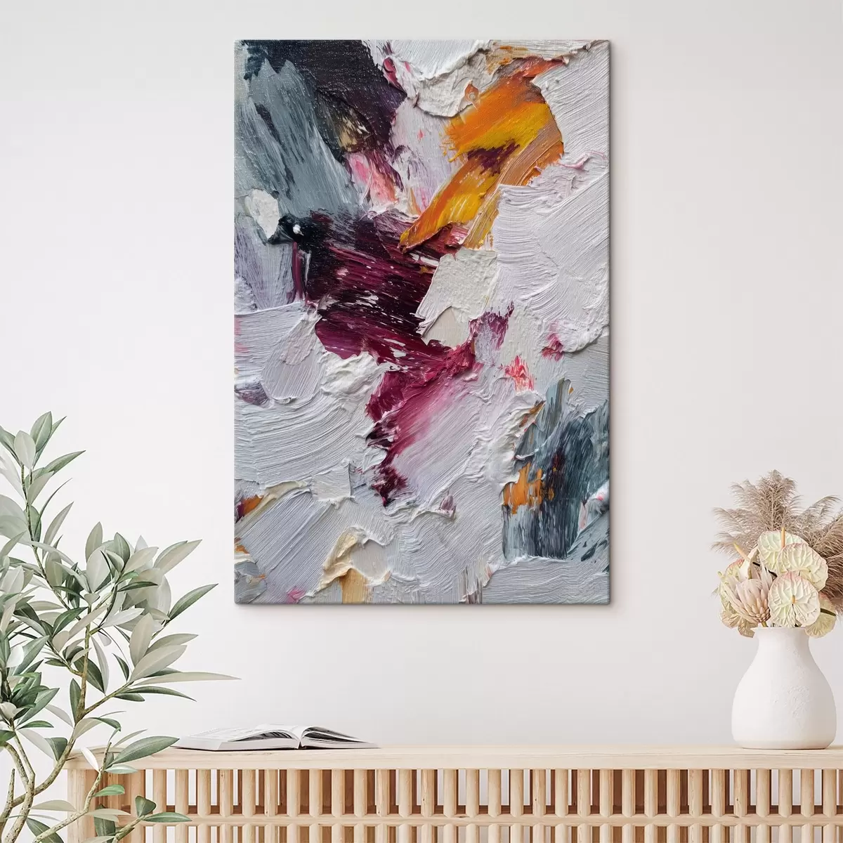 Picture Abstract composition with intense cherry and orange brushstrokes in oil painting style Nr s46959