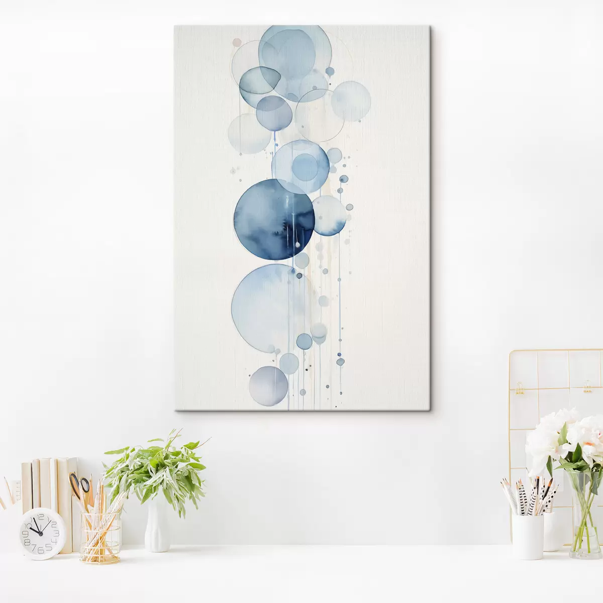 wall murals Abstract textured blue and white watercolor circles of varying sizes, against a white background s47021