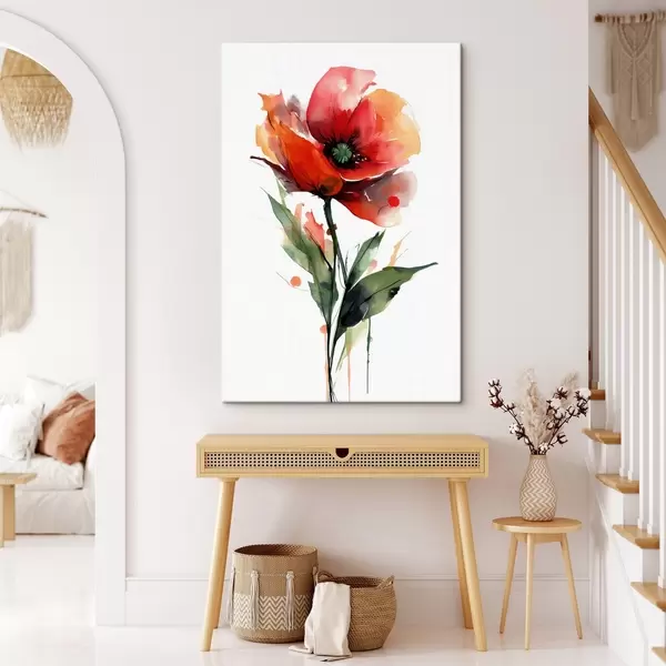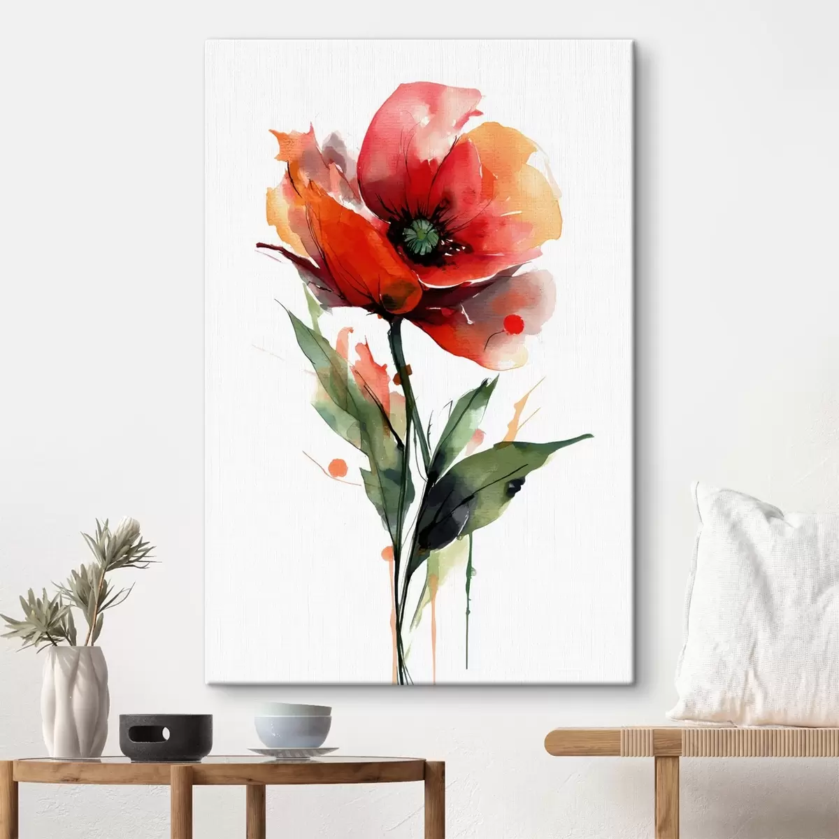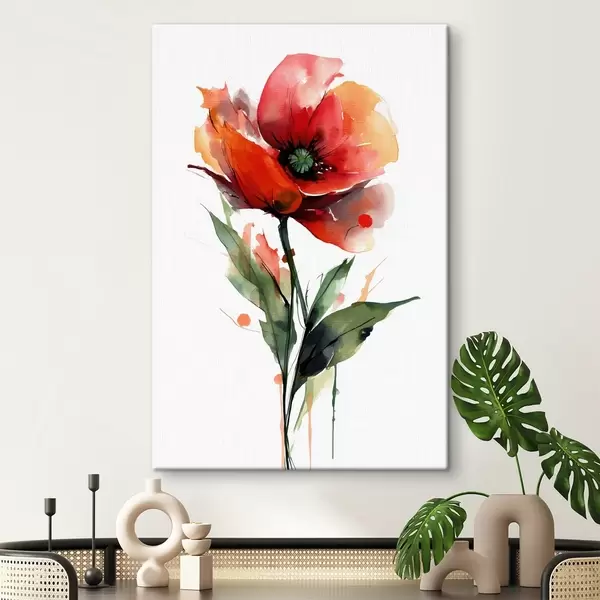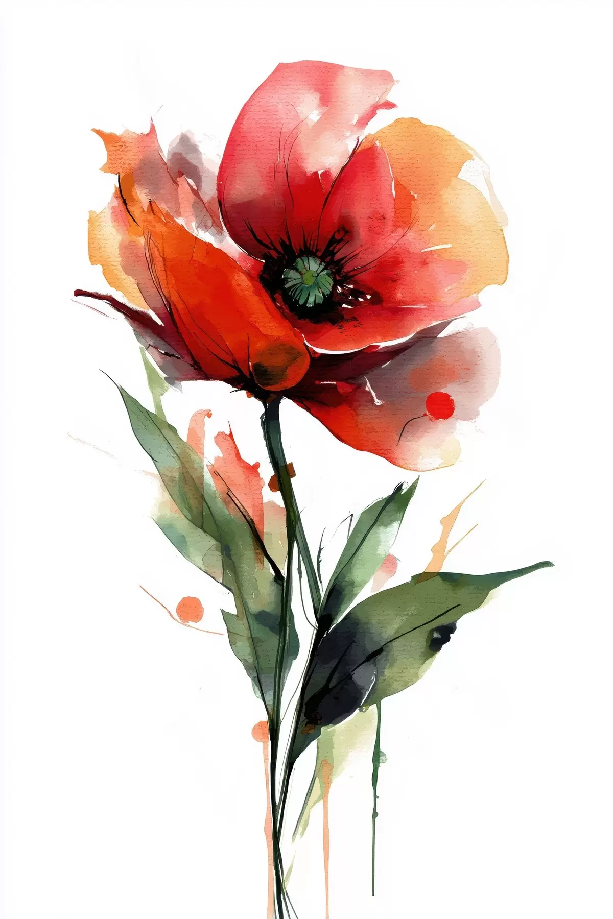 Picture Poppy flower with expressive watercolor paint drips in modern art illustration style Nr s47086