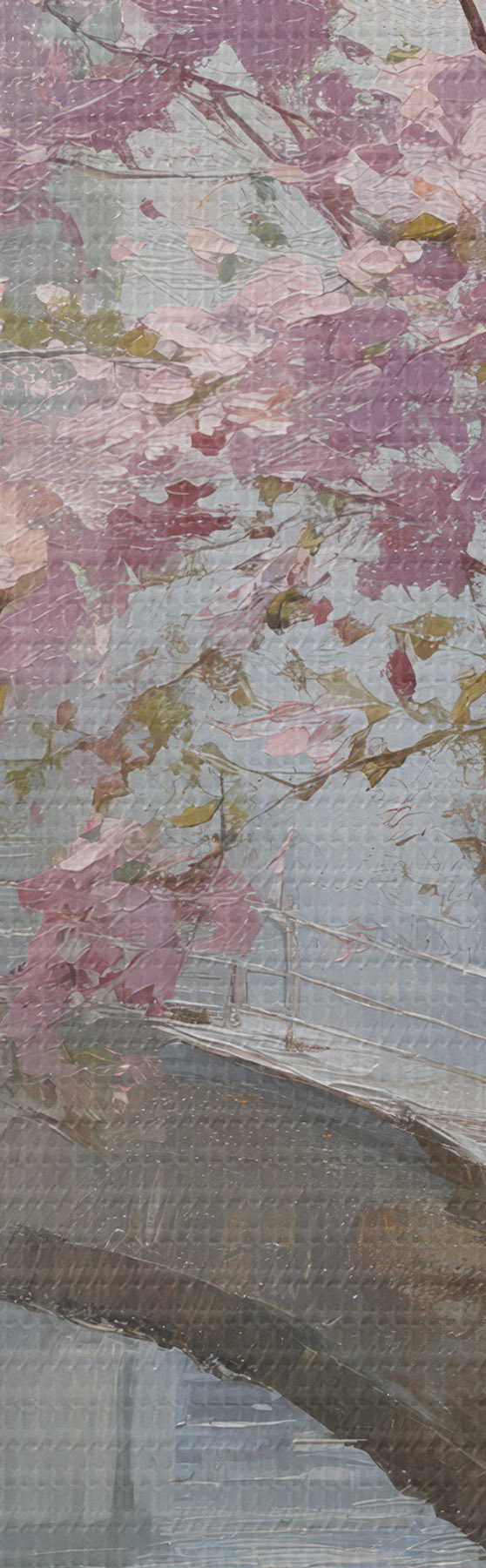 wall murals romantic cityscape with a blossoming tree in the style of oil painting s47127