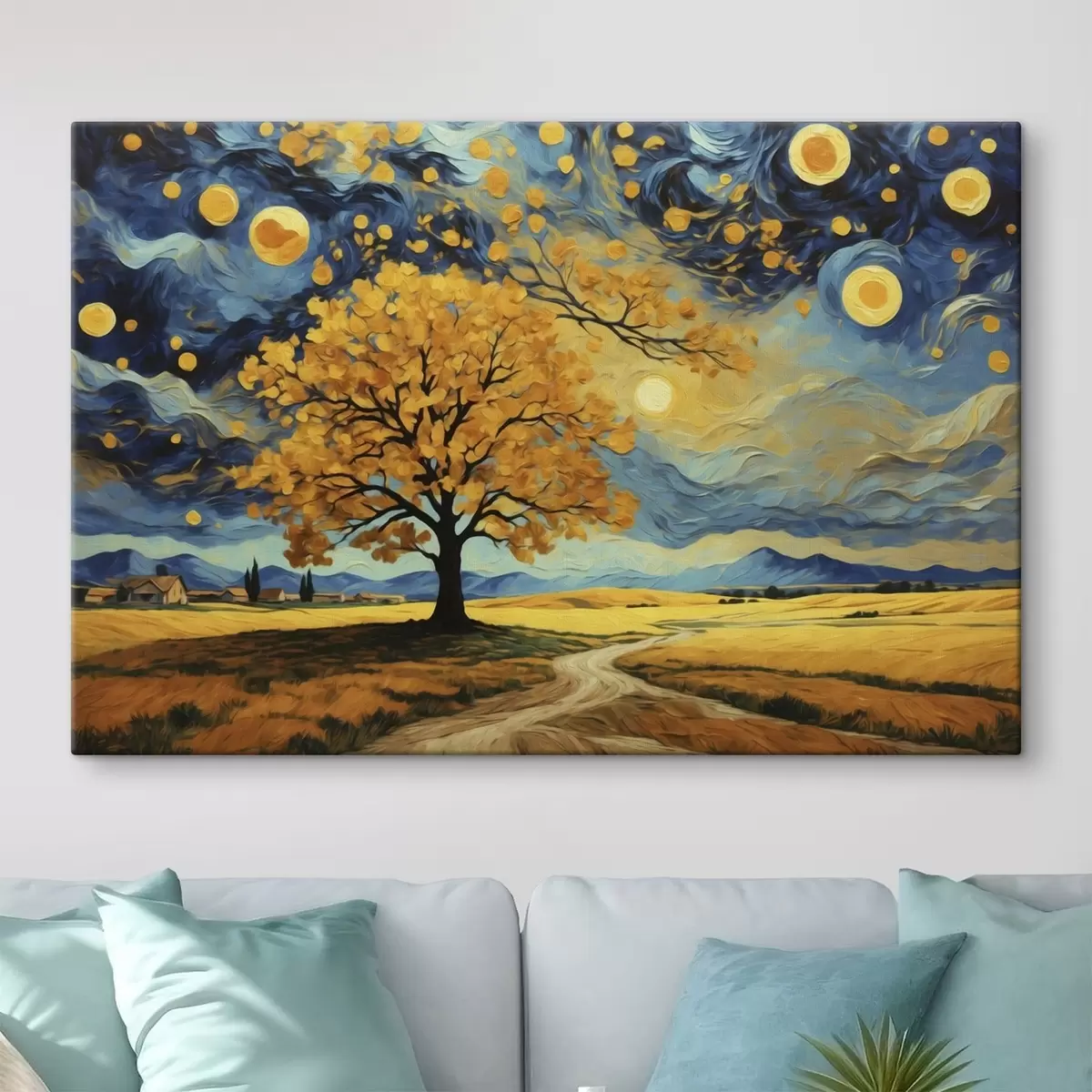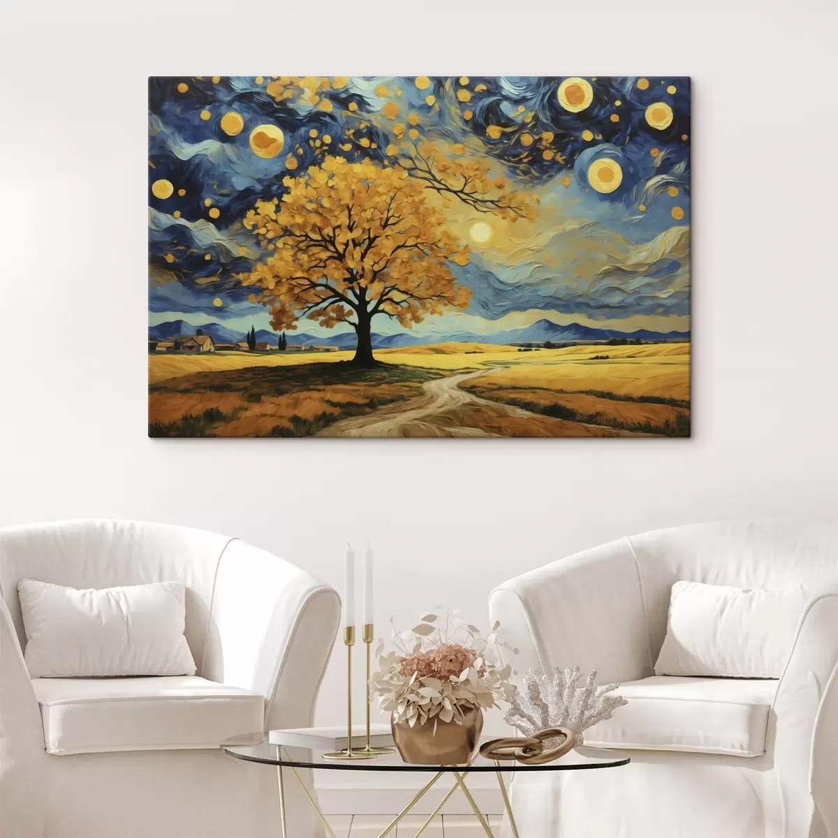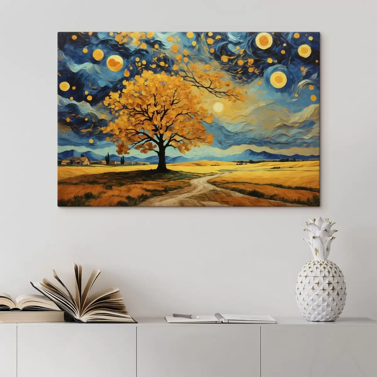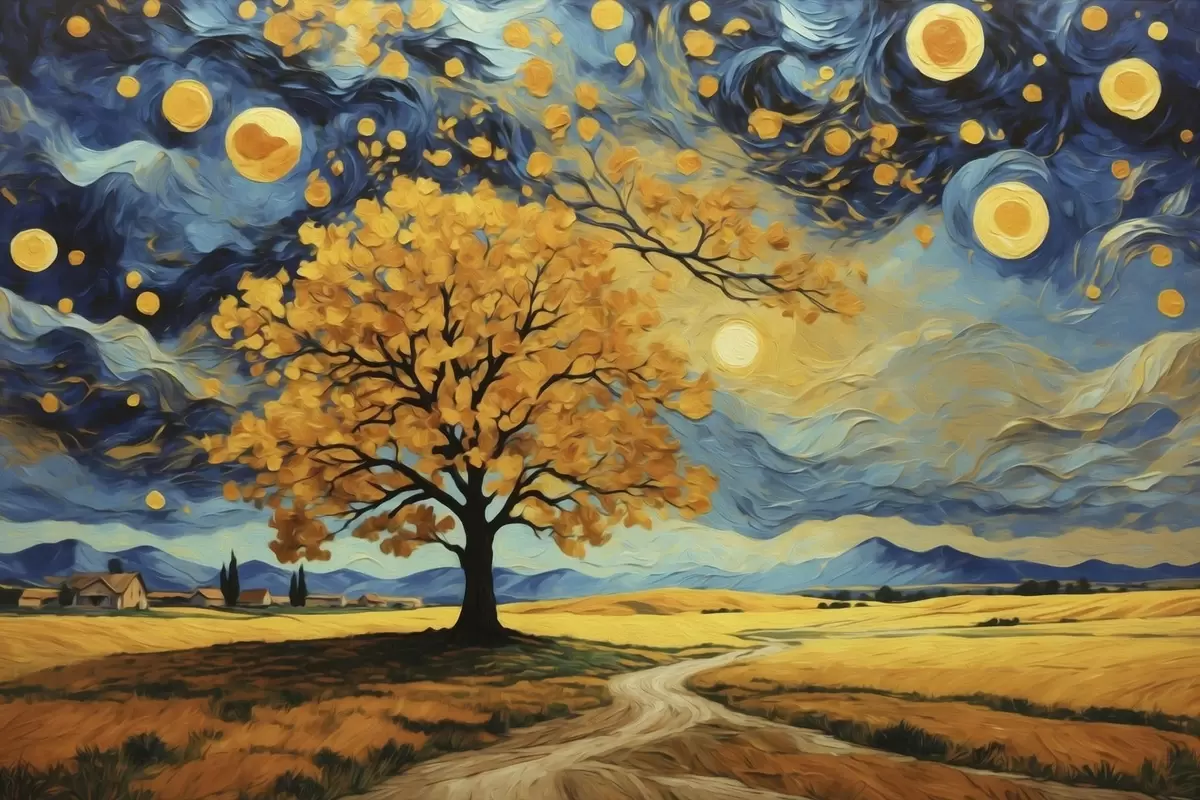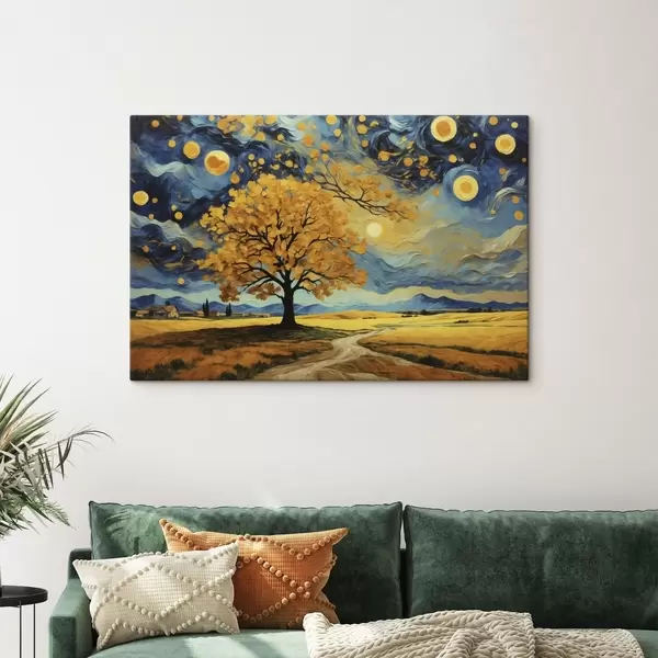 Picture Landscape with a tree and vivid starry sky Nr s47255