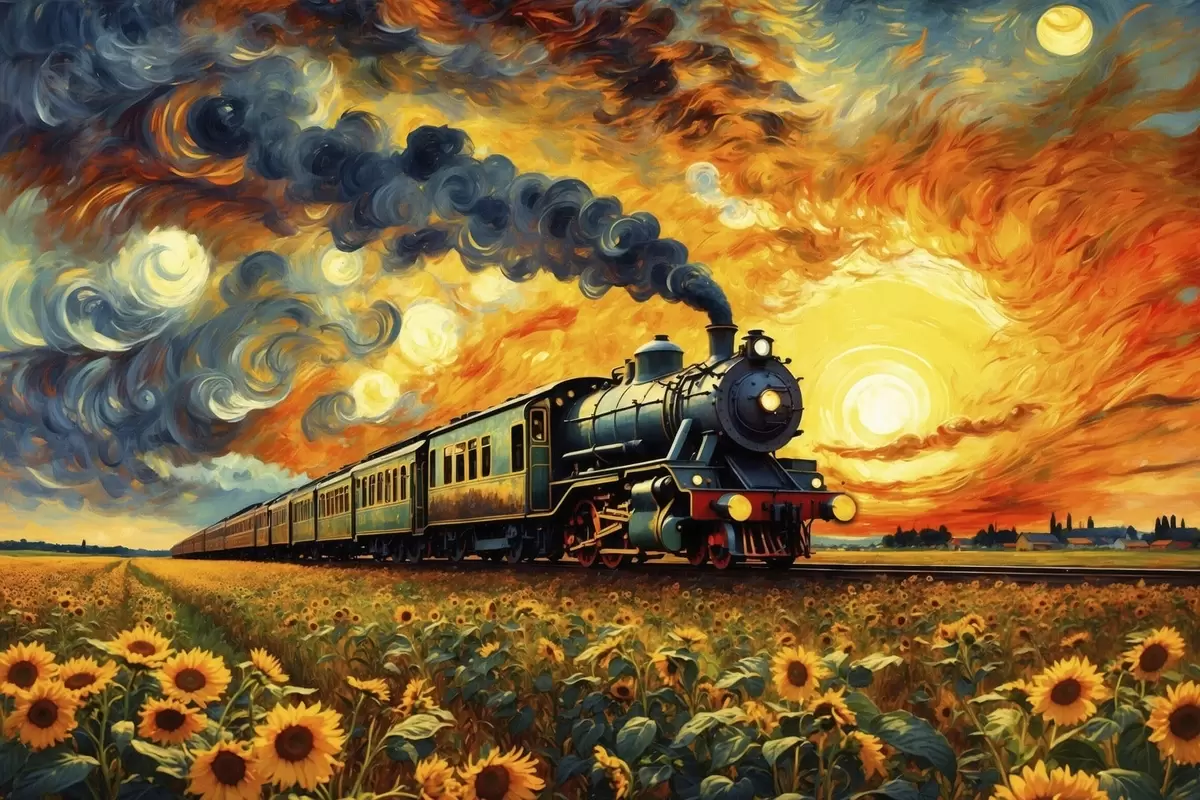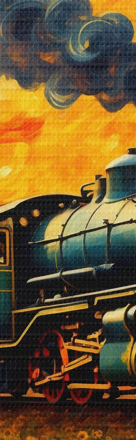 Picture Steam train in a field with dramatic sky Nr s47257