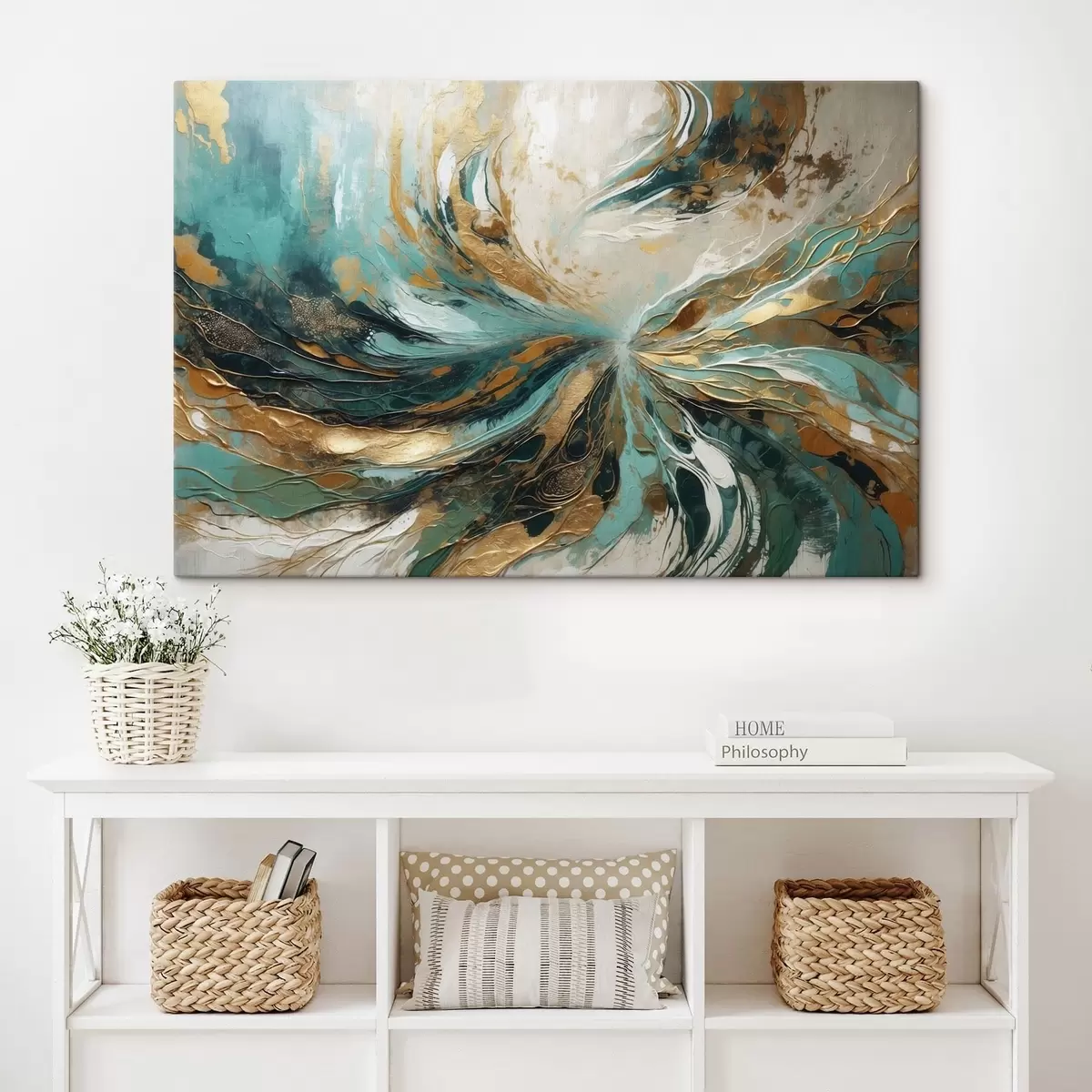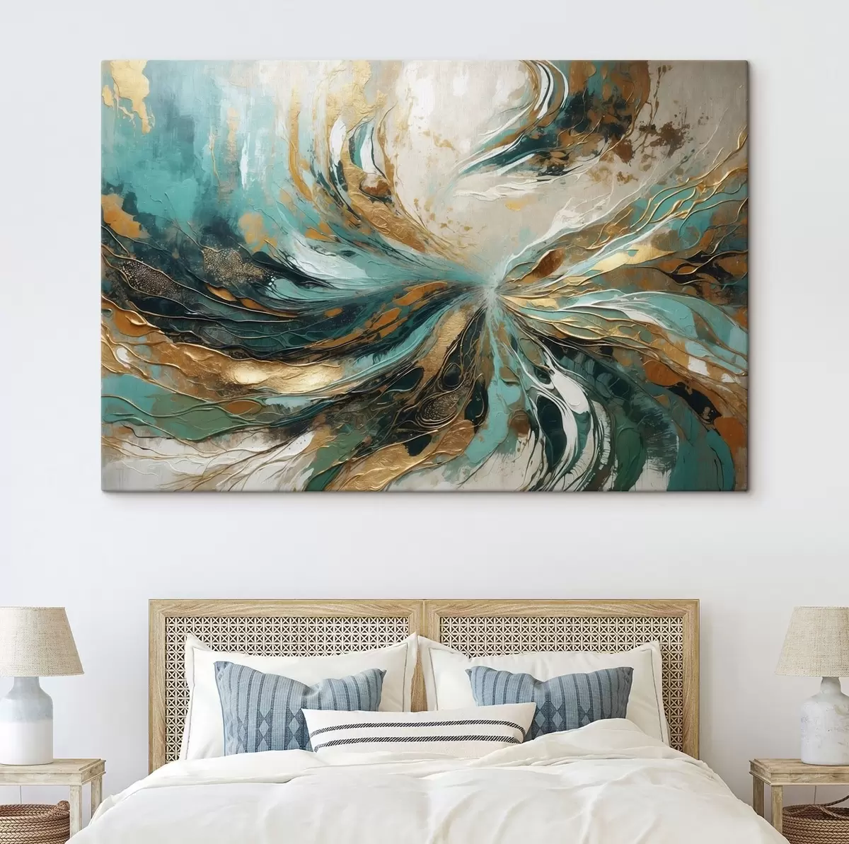 The painting can be hung immediately after receiving it. The painting will be stretched on 2 cm wide wooden stretcher.