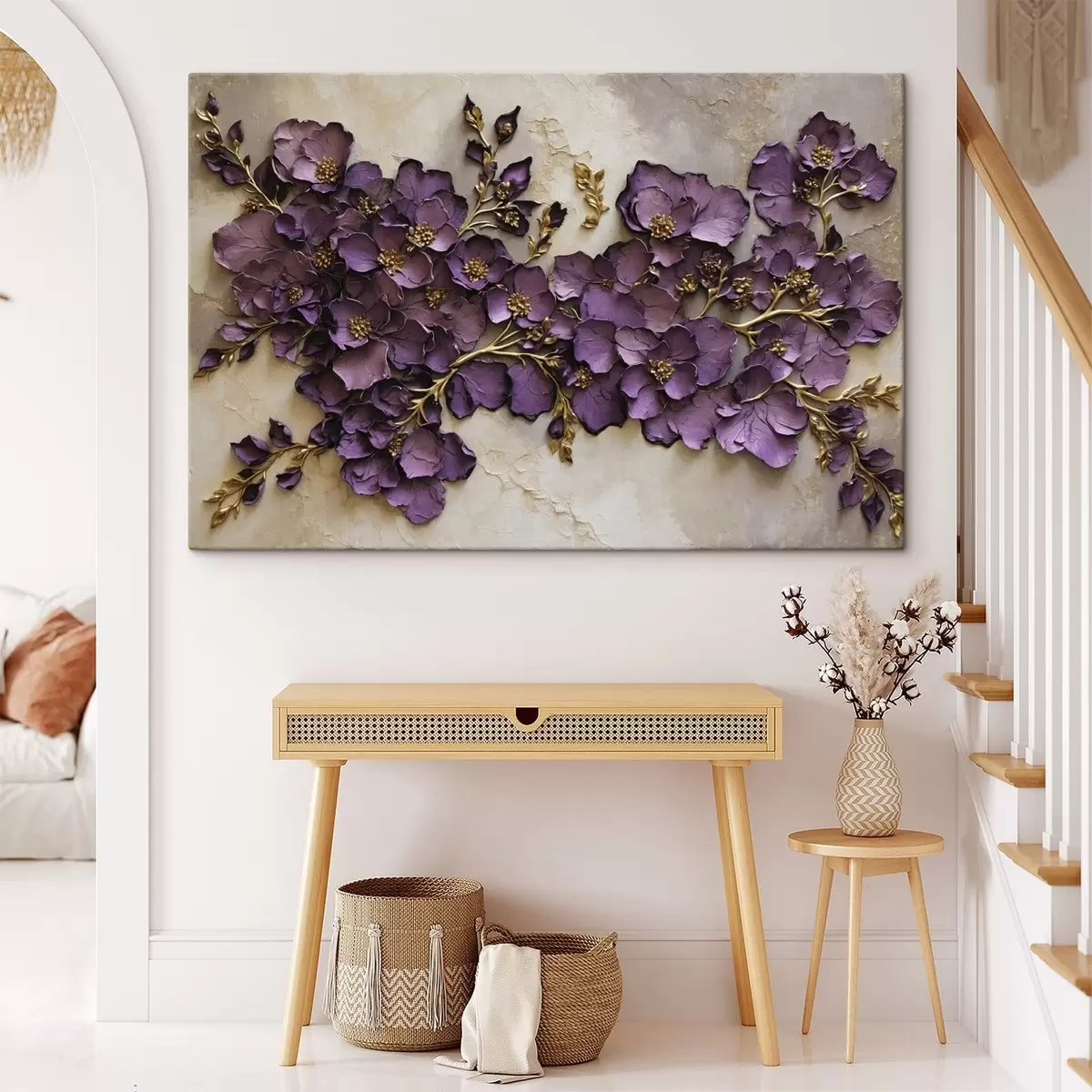 The painting can be hung immediately after receiving it. The painting will be stretched on 2 cm wide wooden stretcher.