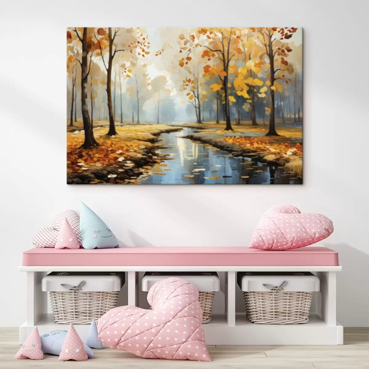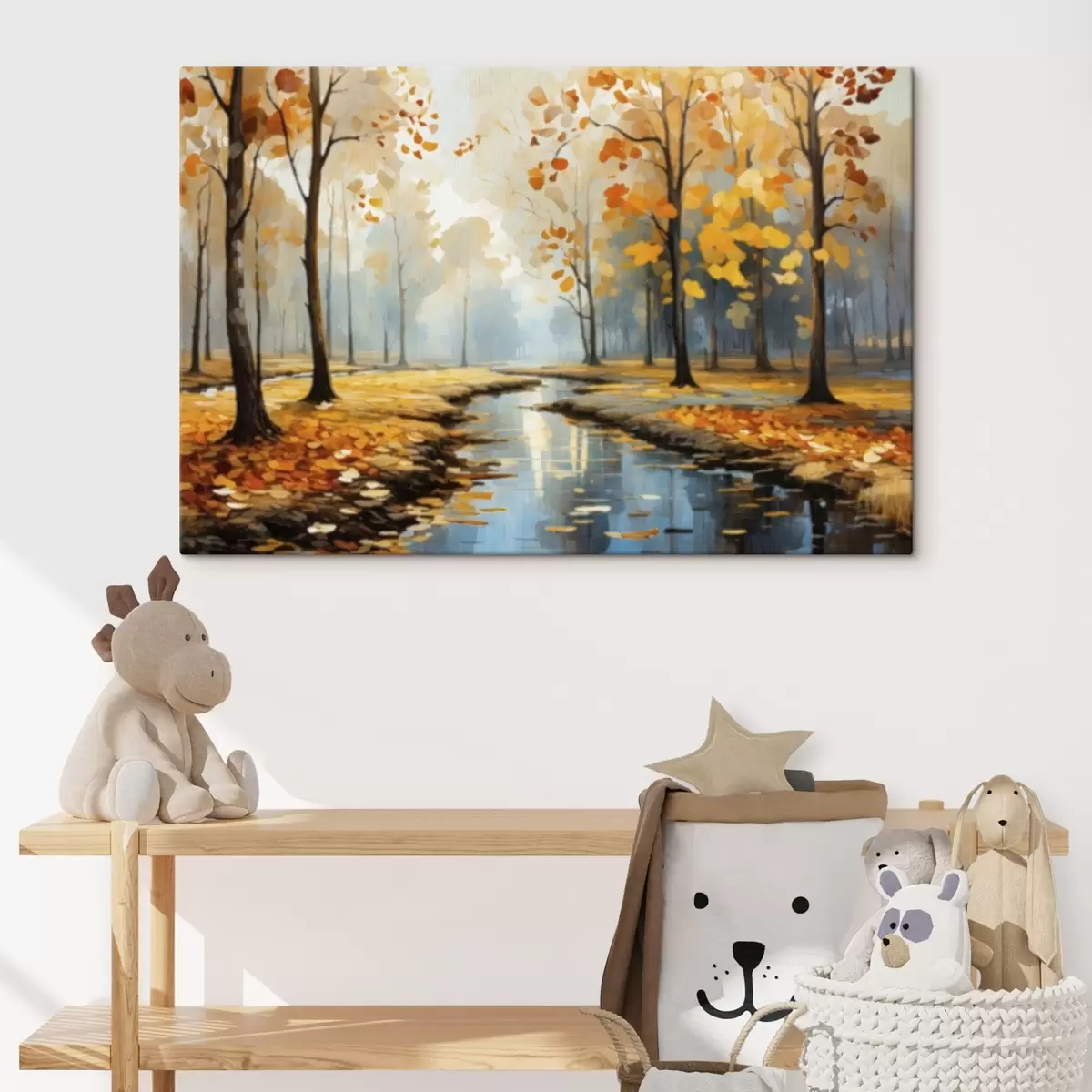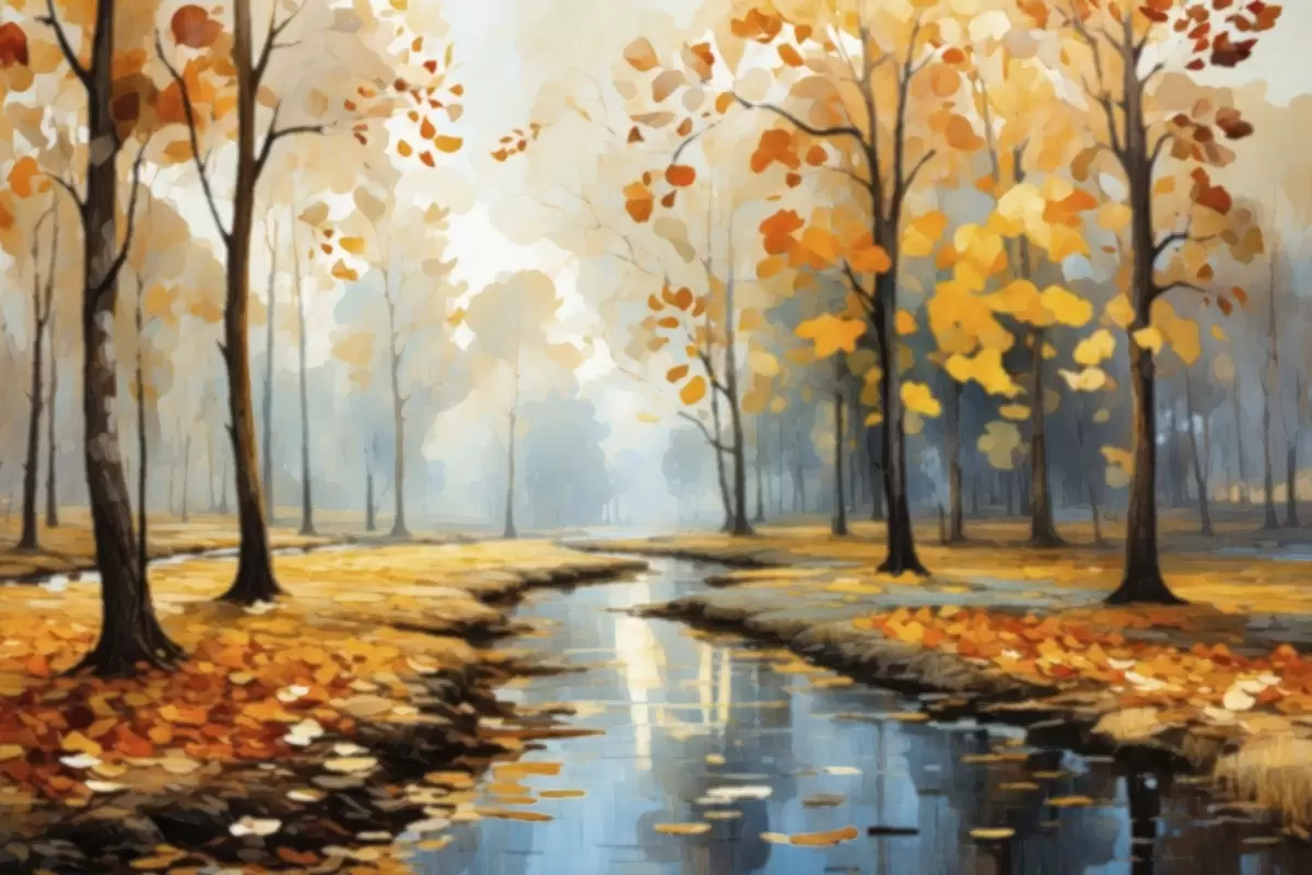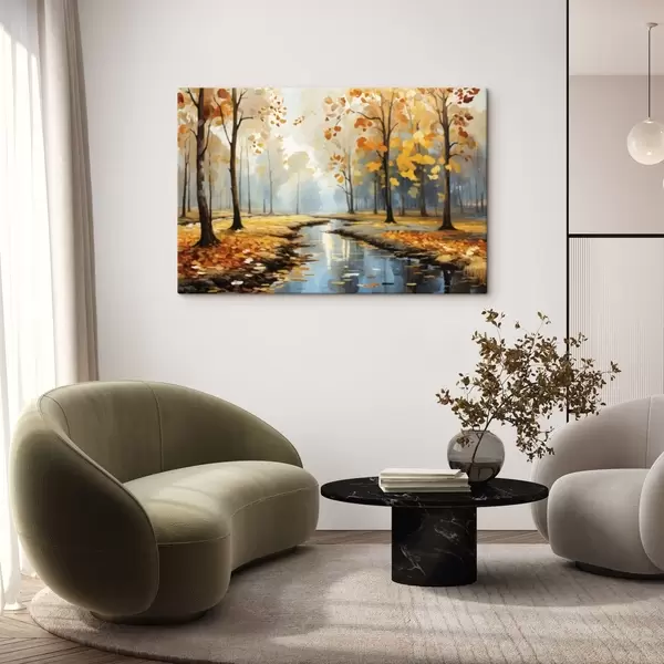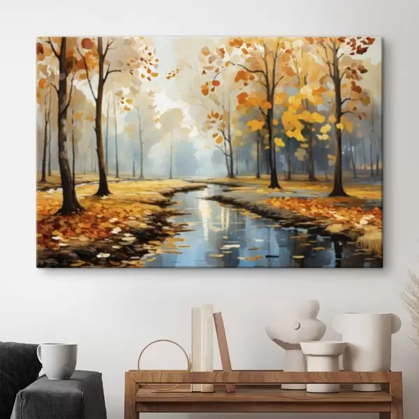 Picture Autumn forest with a stream and yellow leaves Nr s47278