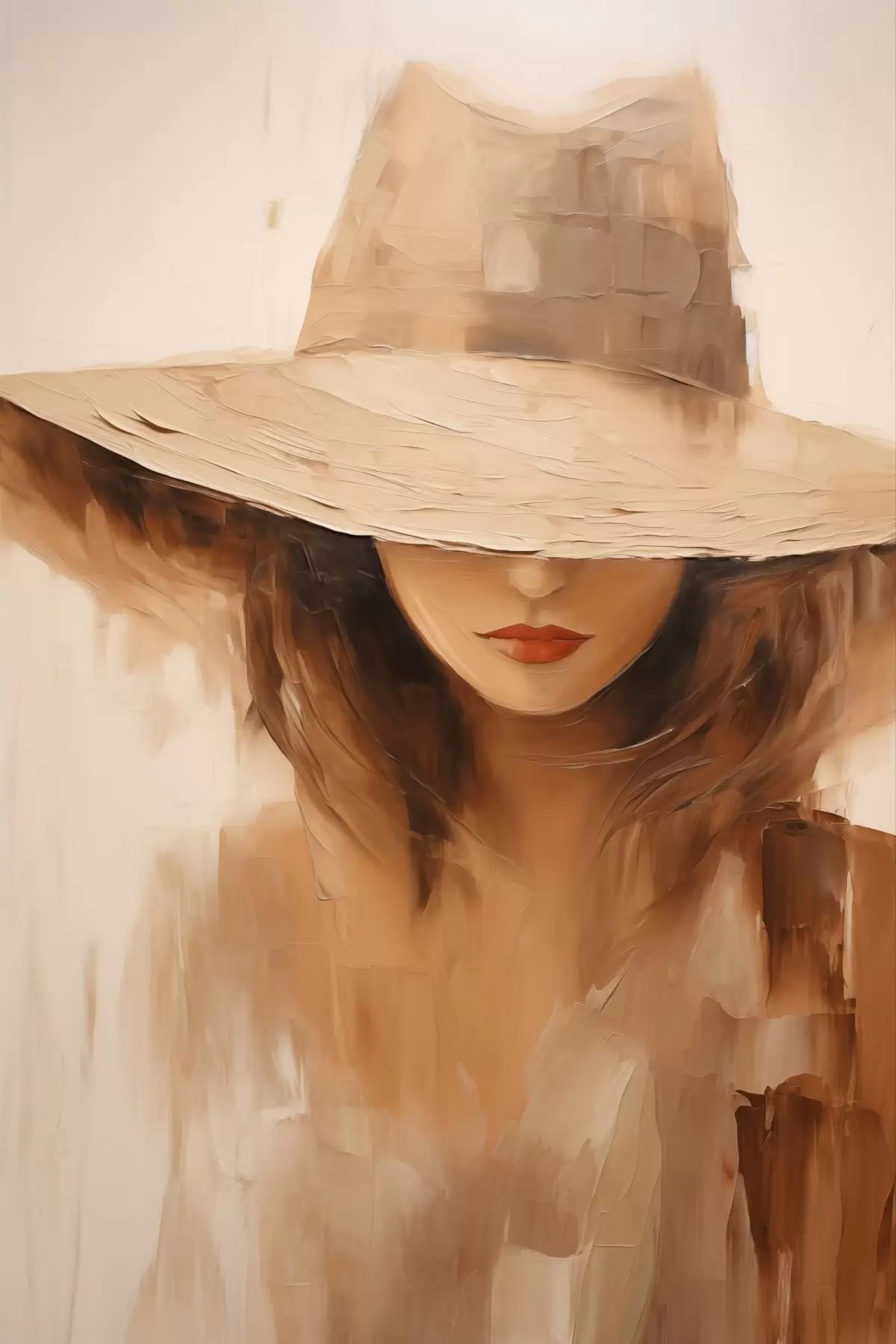 Picture Woman in a hat in warm abstract strokes Nr s47312