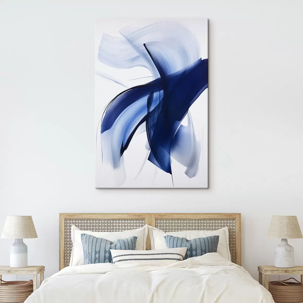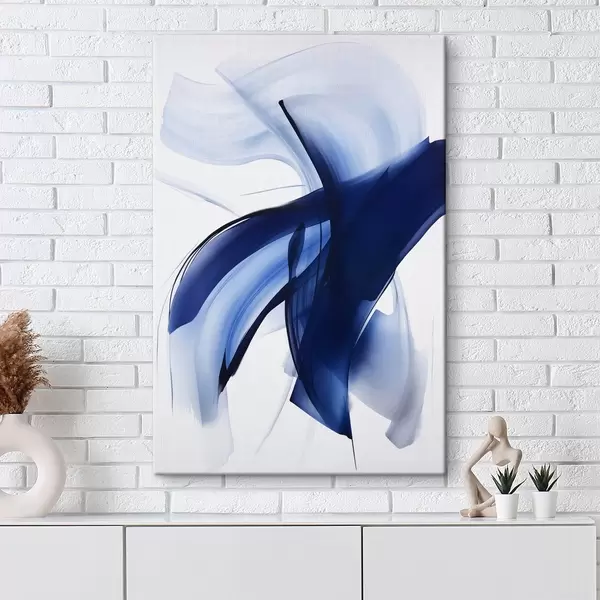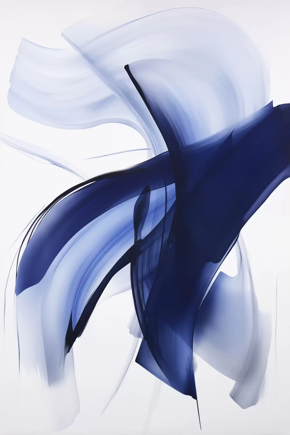 Picture Abstract blue brushstroke-like shapes with fluid lines and curves against a white background, modern art Nr s47429