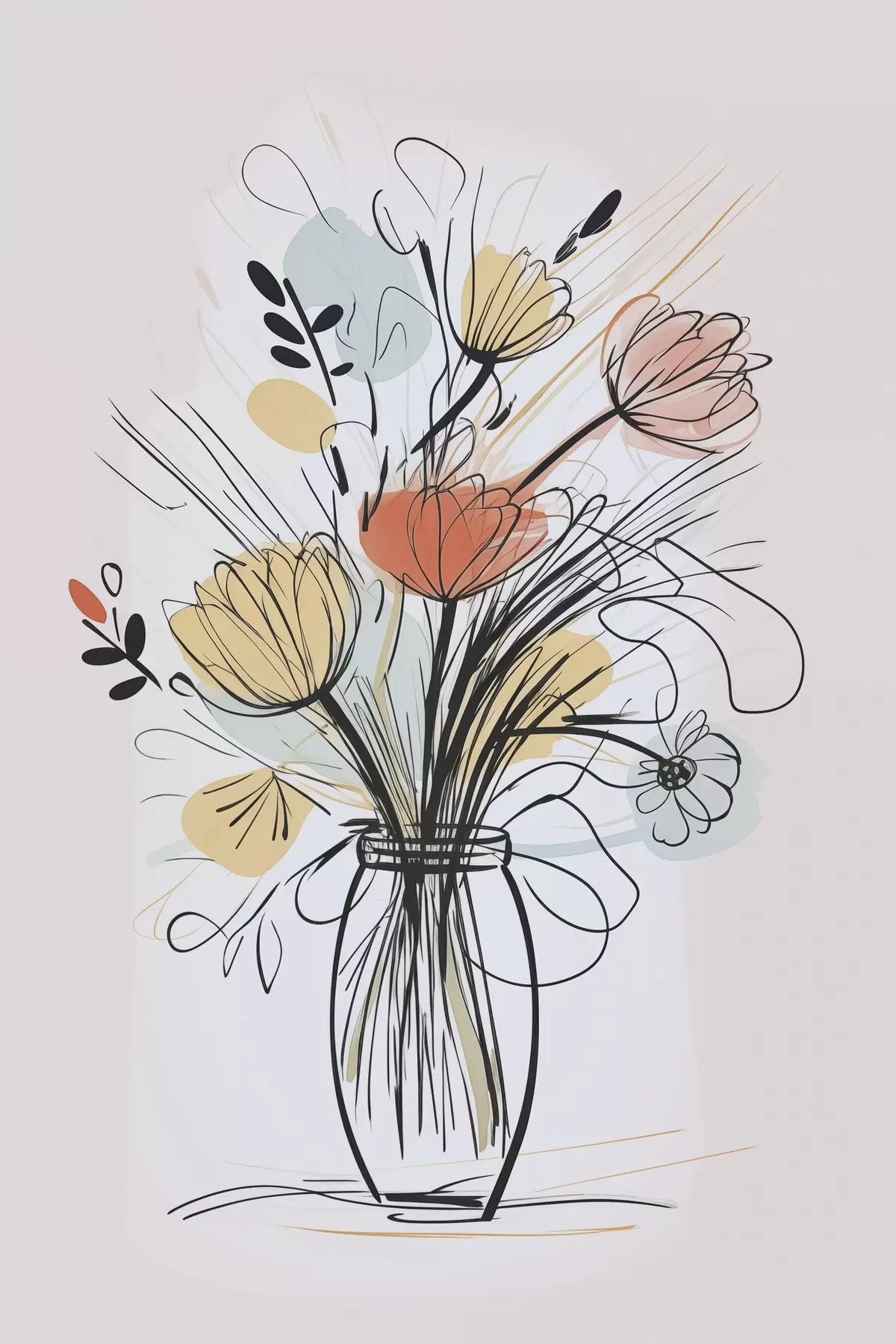 wall murals Flowers in a vase imitation of a drawing s47494