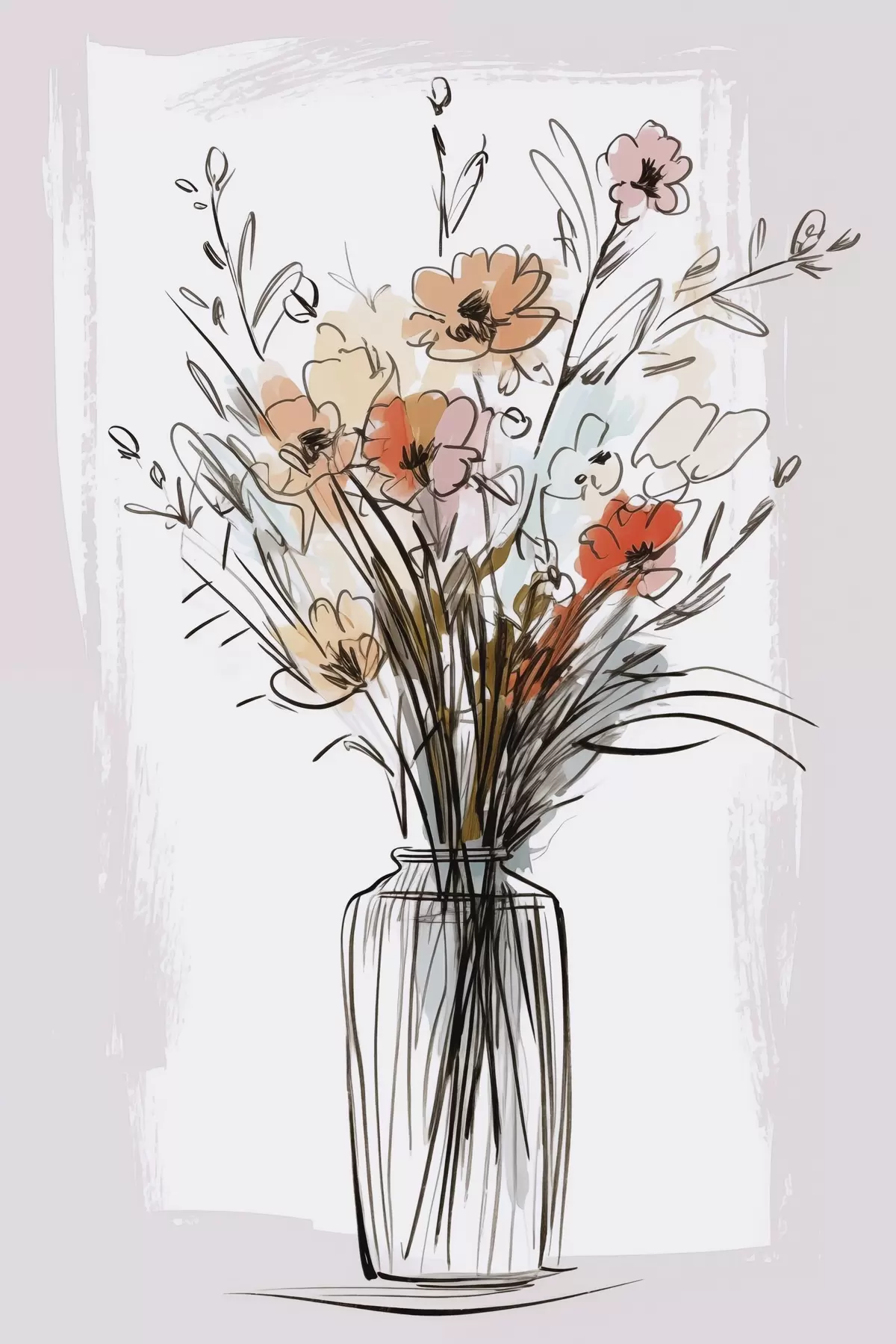 wall murals Flowers in a vase imitation of a drawing s47495