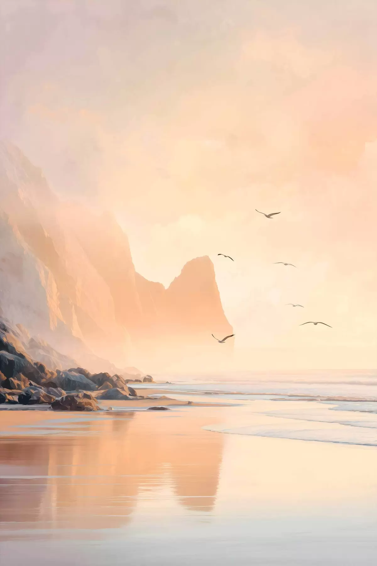 Picture ocean dawn against the backdrop of mountains Nr s47689