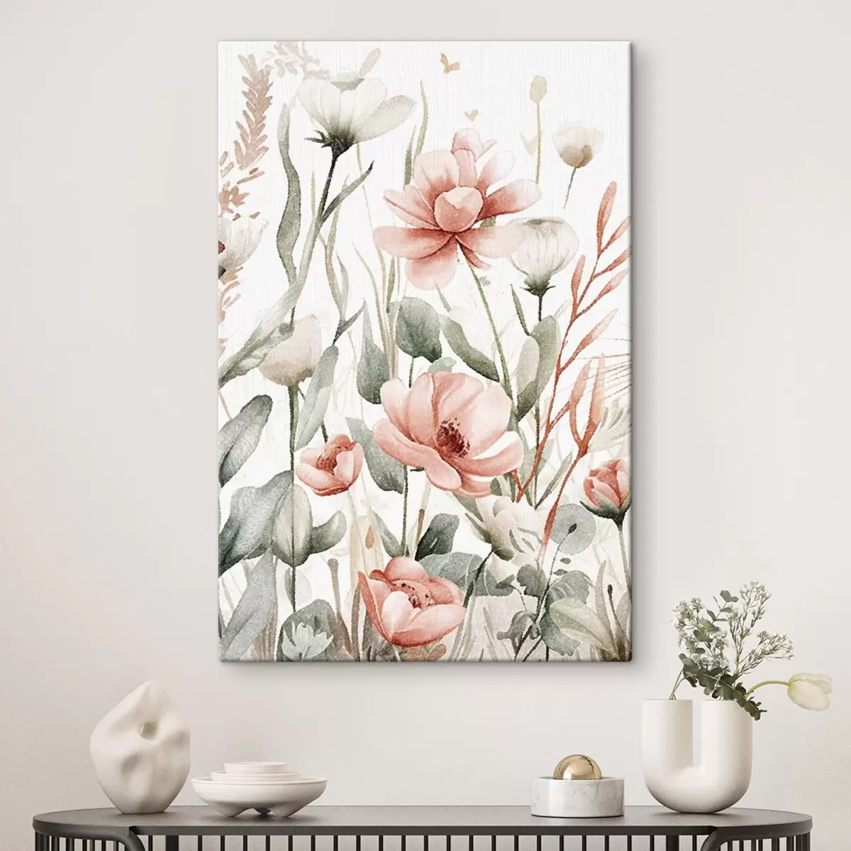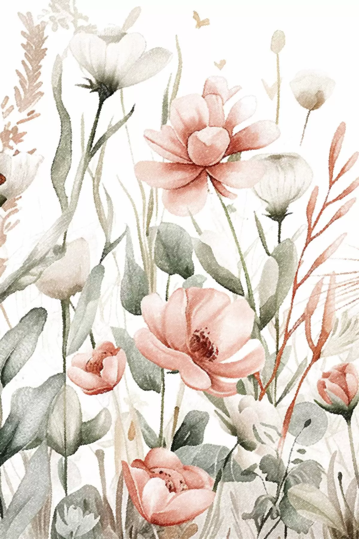 wall murals Watercolor flowers, pencil effect s47740