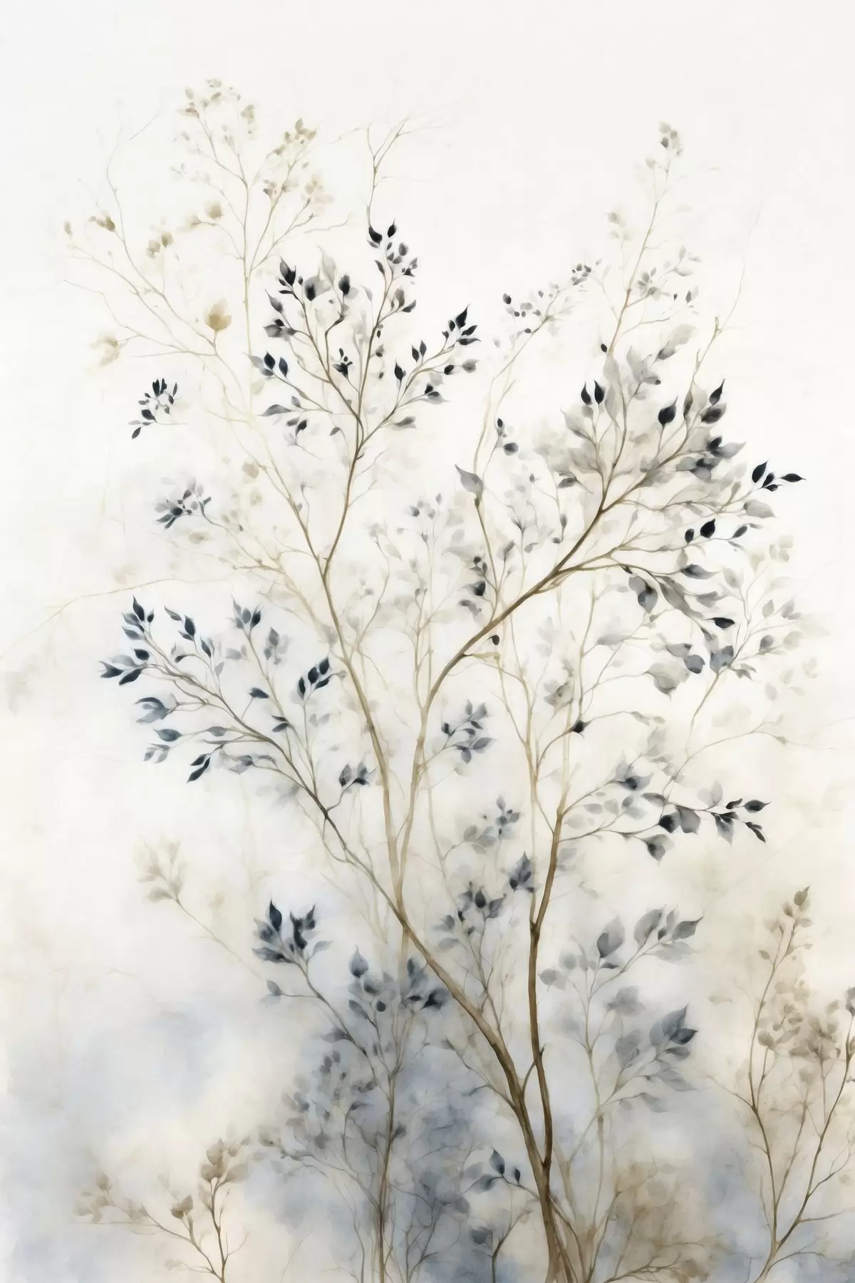Picture Delicate branches with small leaves on a light background Nr s47763