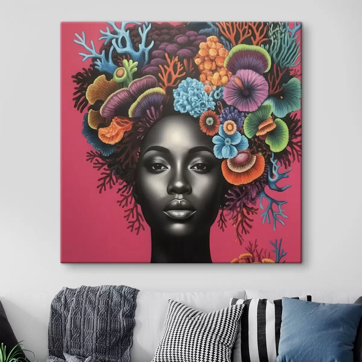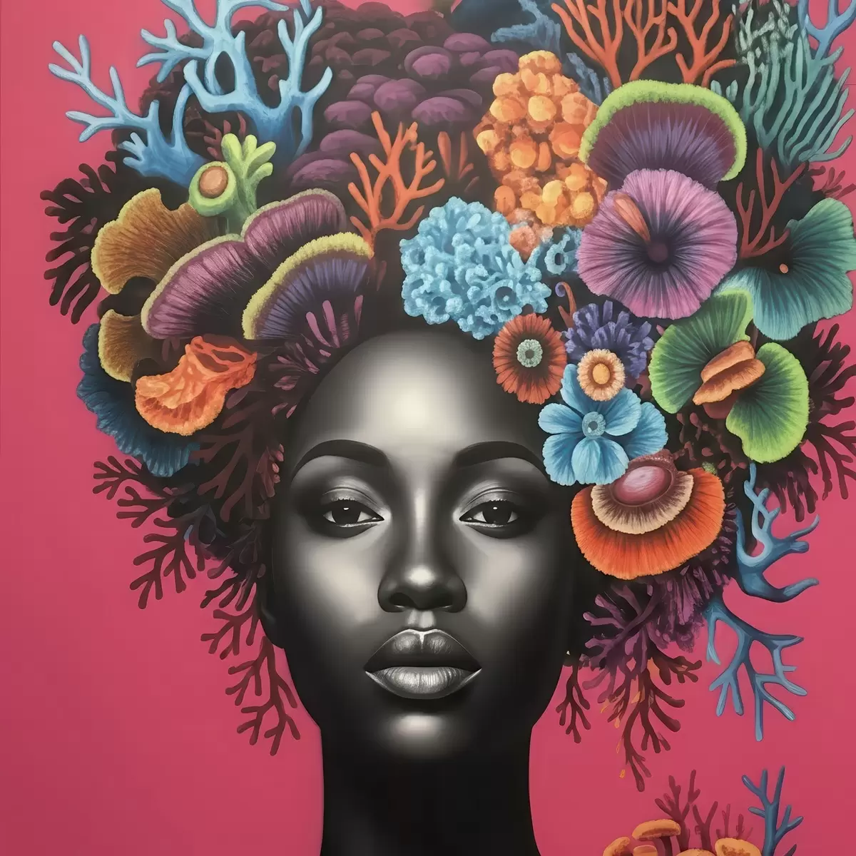 wall murals Psychedelic portrait of a woman with mushrooms s47786