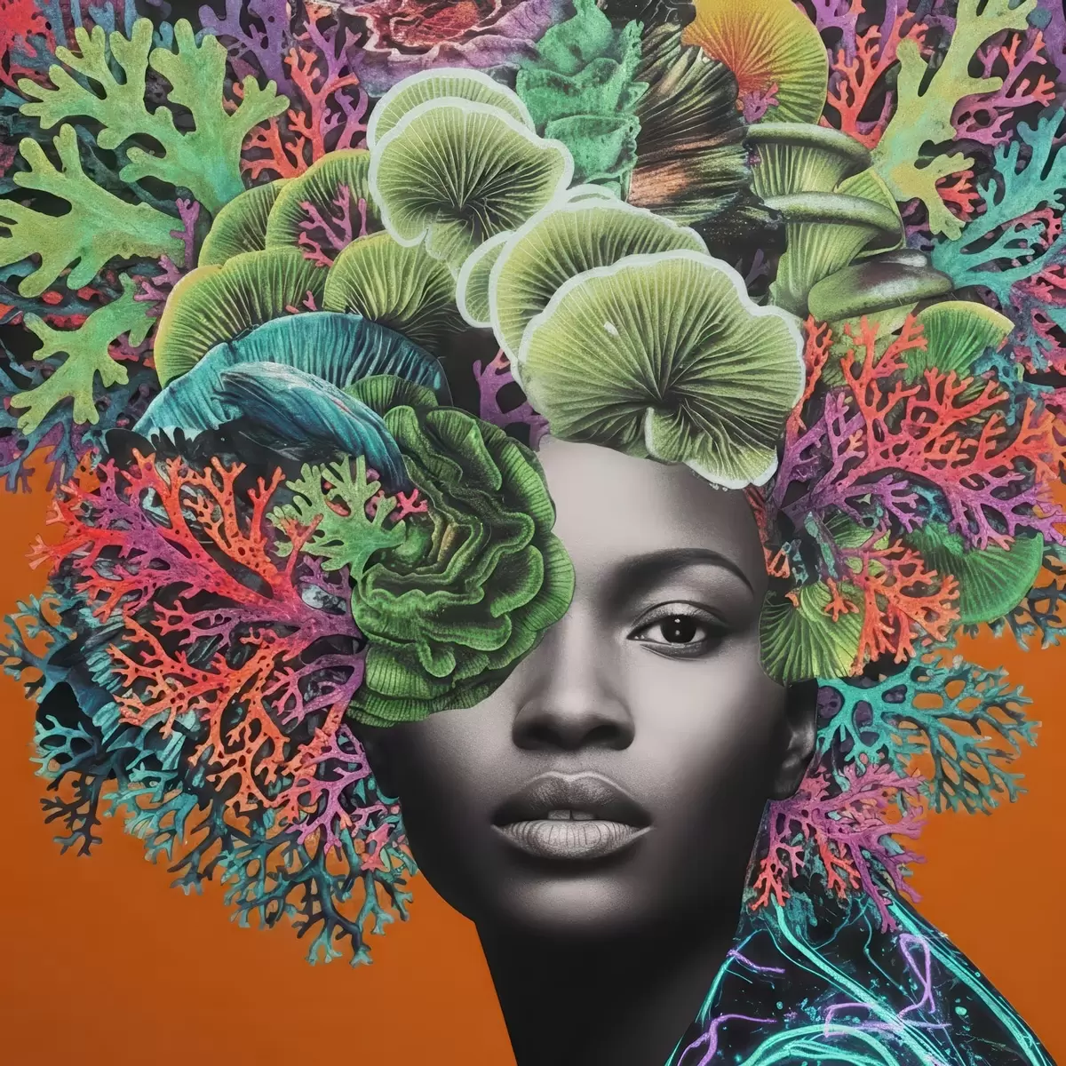 wall murals Psychedelic portrait with mushrooms s47787