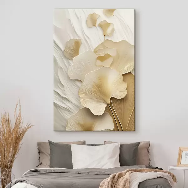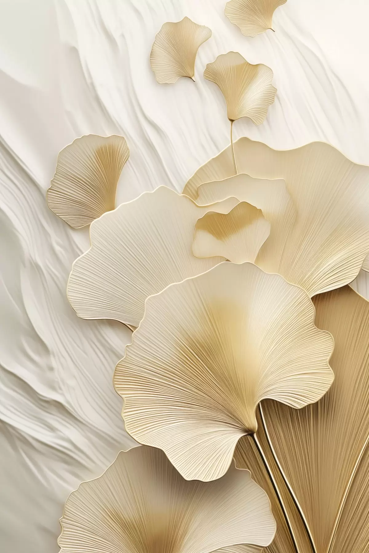 wall murals Ginkgo abstract leaves against a textured, light background, elegant and abstract composition s47868