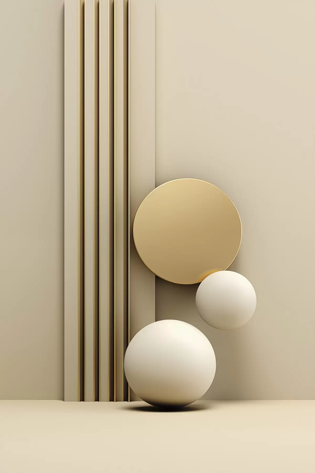 wall murals Abstract beige modern art with vertical lines and spheres s47871