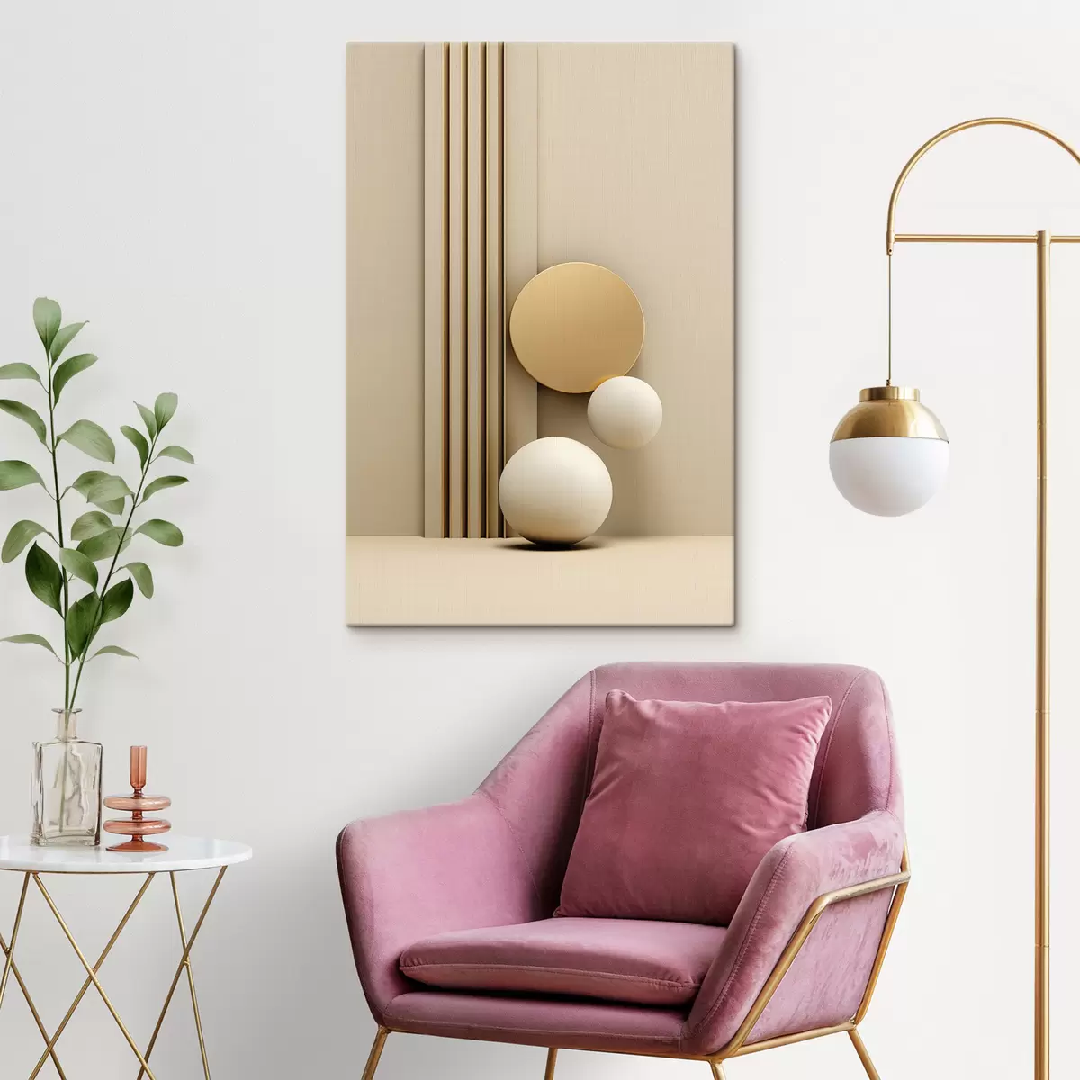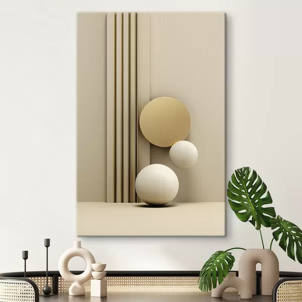 Picture Abstract beige modern art with vertical lines and spheres Nr s47871