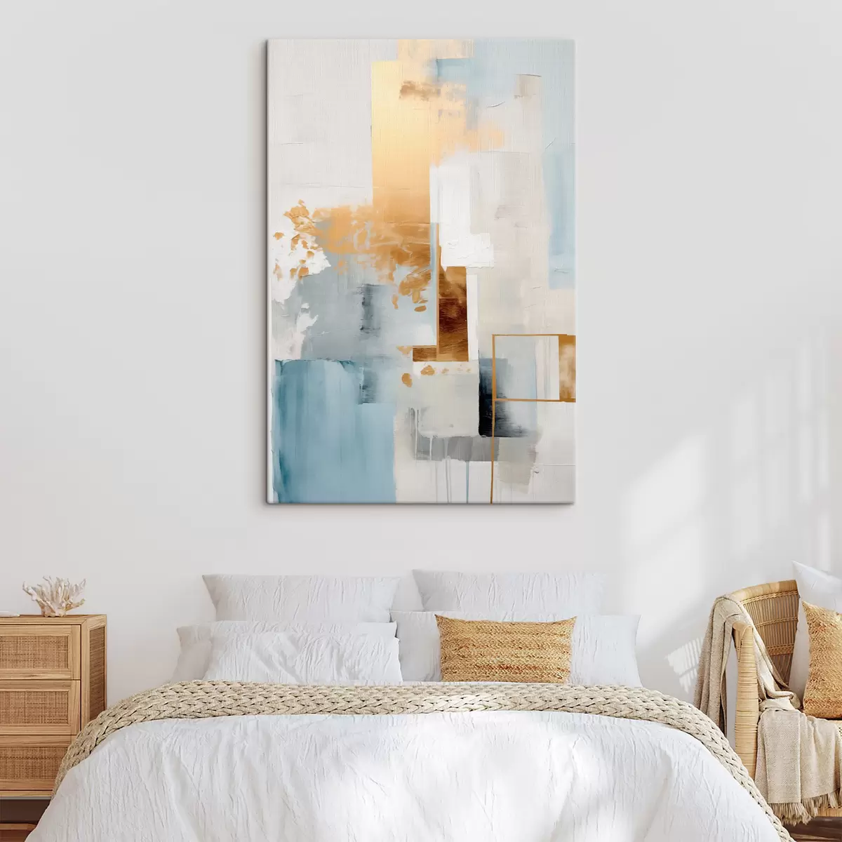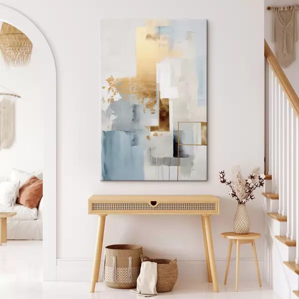 Picture Abstract geometric shapes with yellow, blue, and white colors, textured and minimalist composition Nr s47881