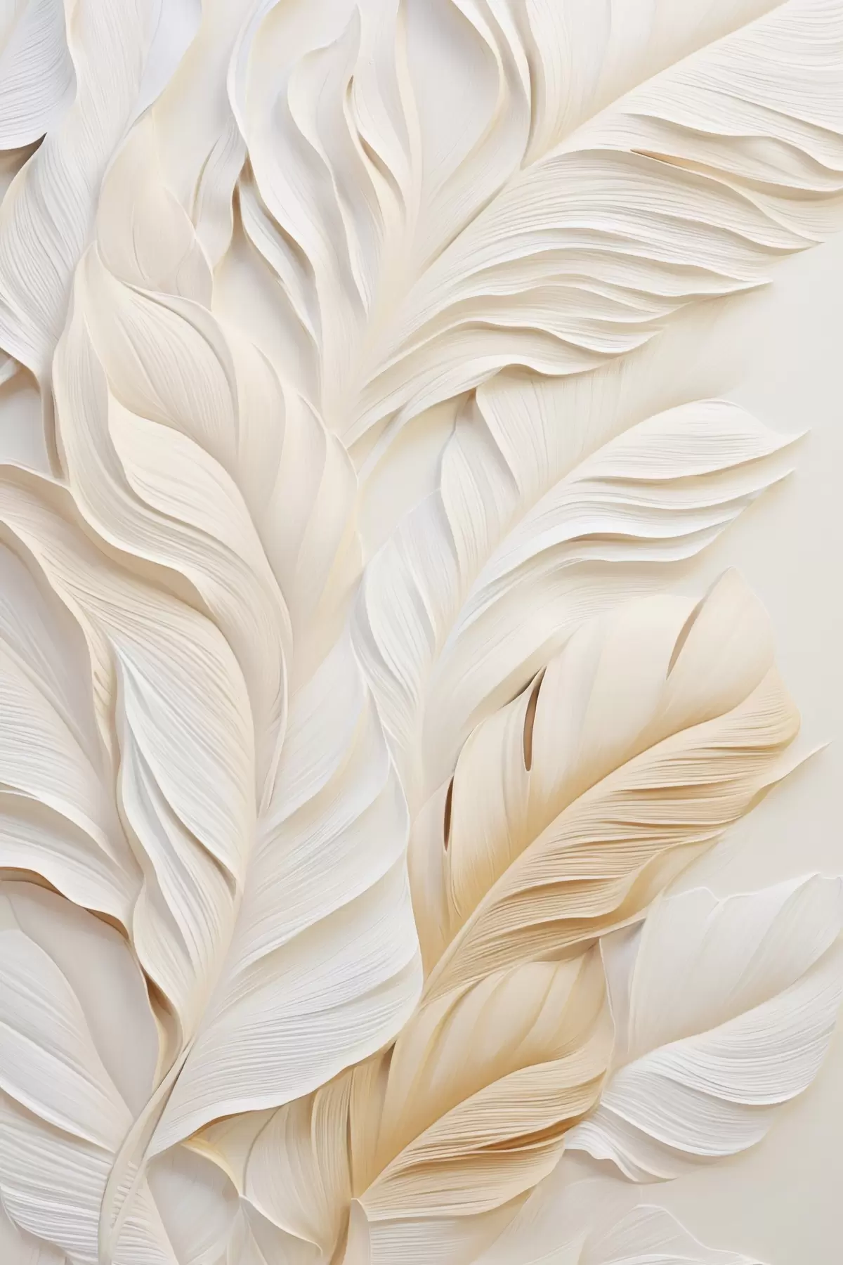 wall murals Cream-colored feathers overlapping each other, with a soft, light background s47884