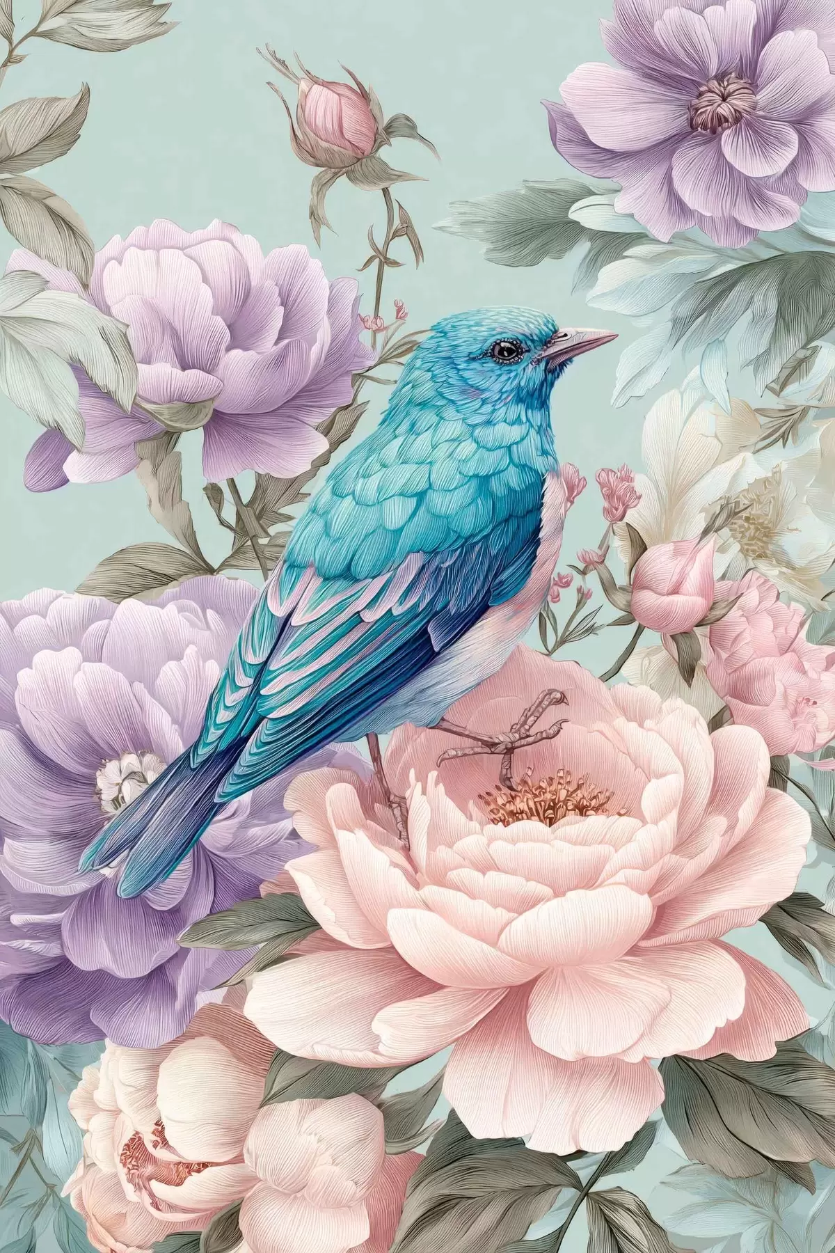 wall murals singing birds in roses s47943
