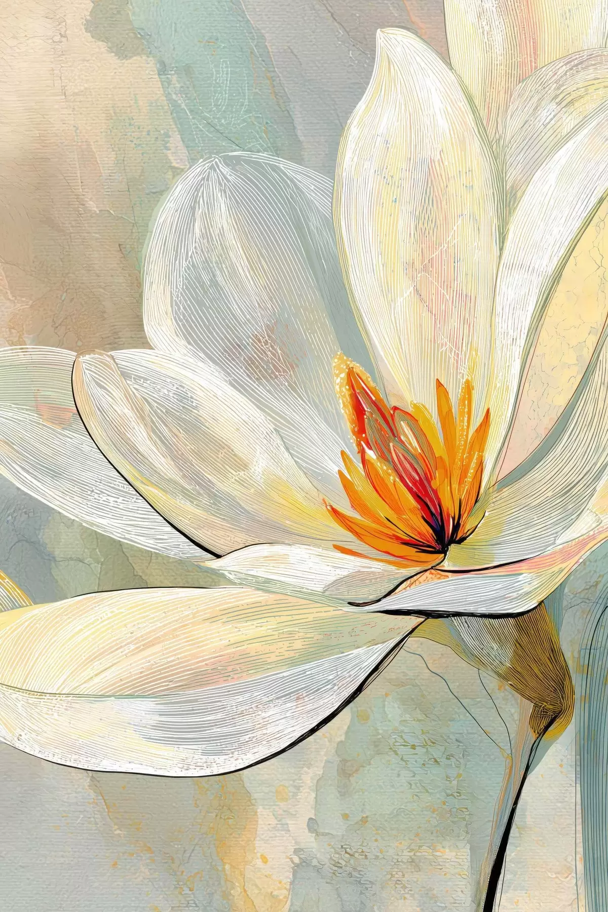 Picture Abstract magnolias in a pastel palette with emphasis on linear graphics Nr s47970
