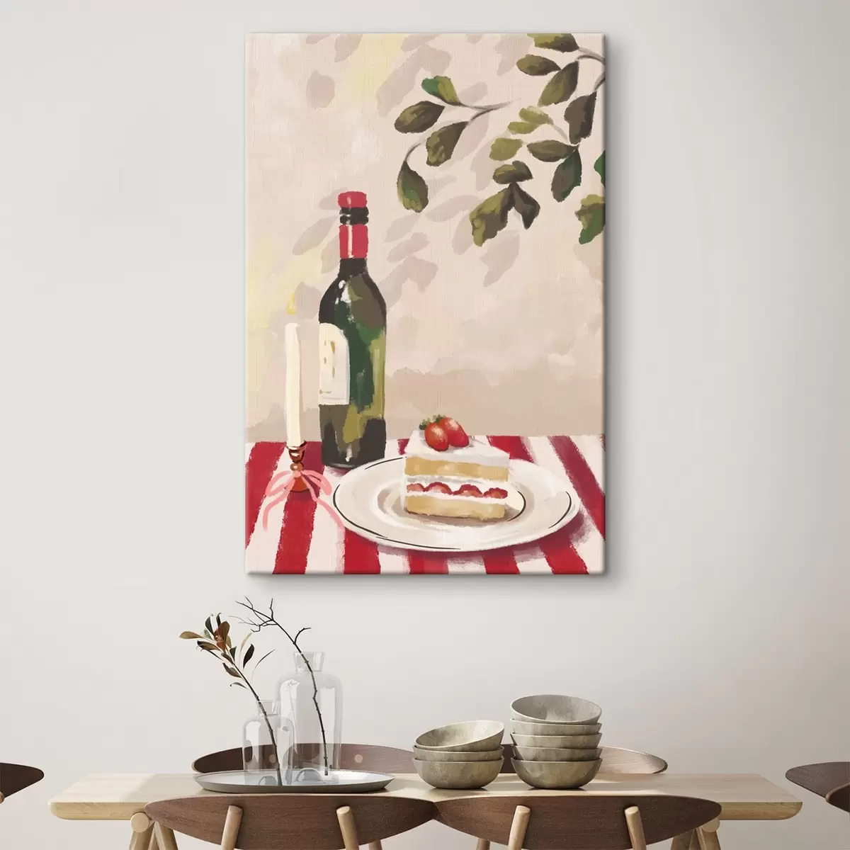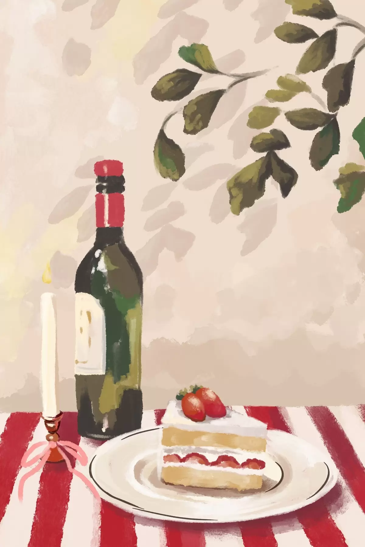 wall murals Still life with wine, candle and cake s48024