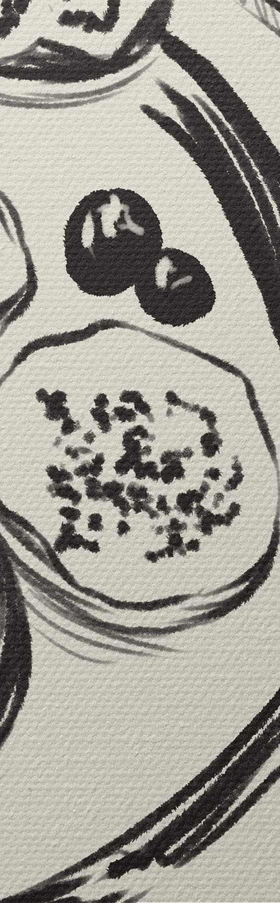 Picture Black and white sketch of table with fruit and glass Nr s48030