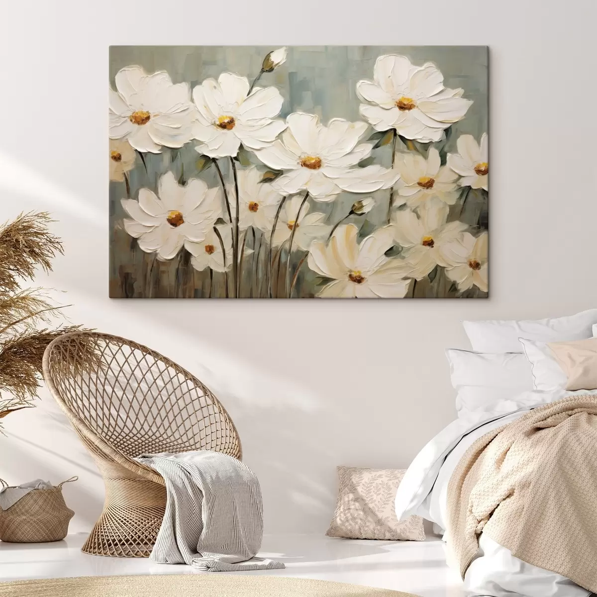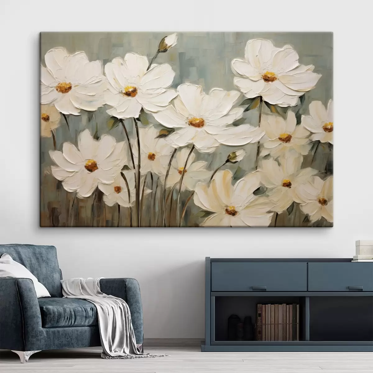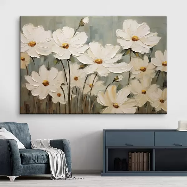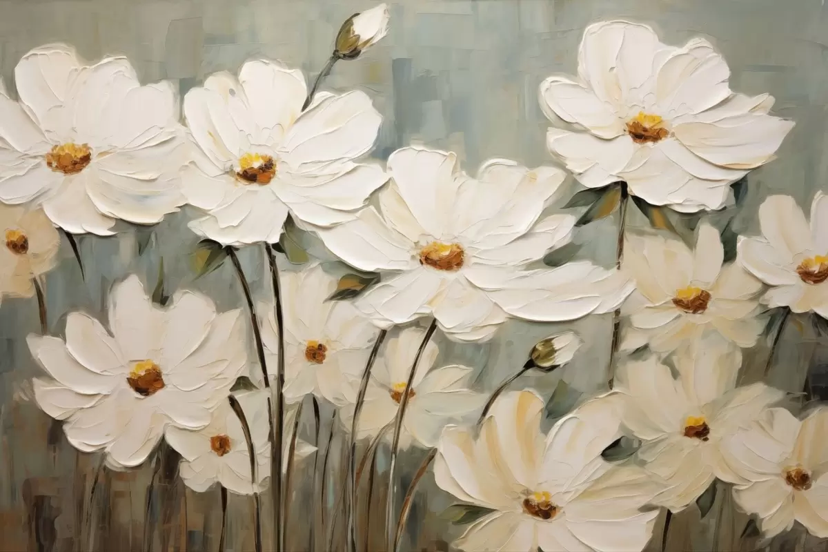 Picture White flowers on textured background, brush strokes Nr s48094
