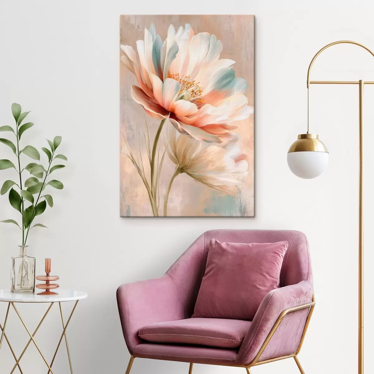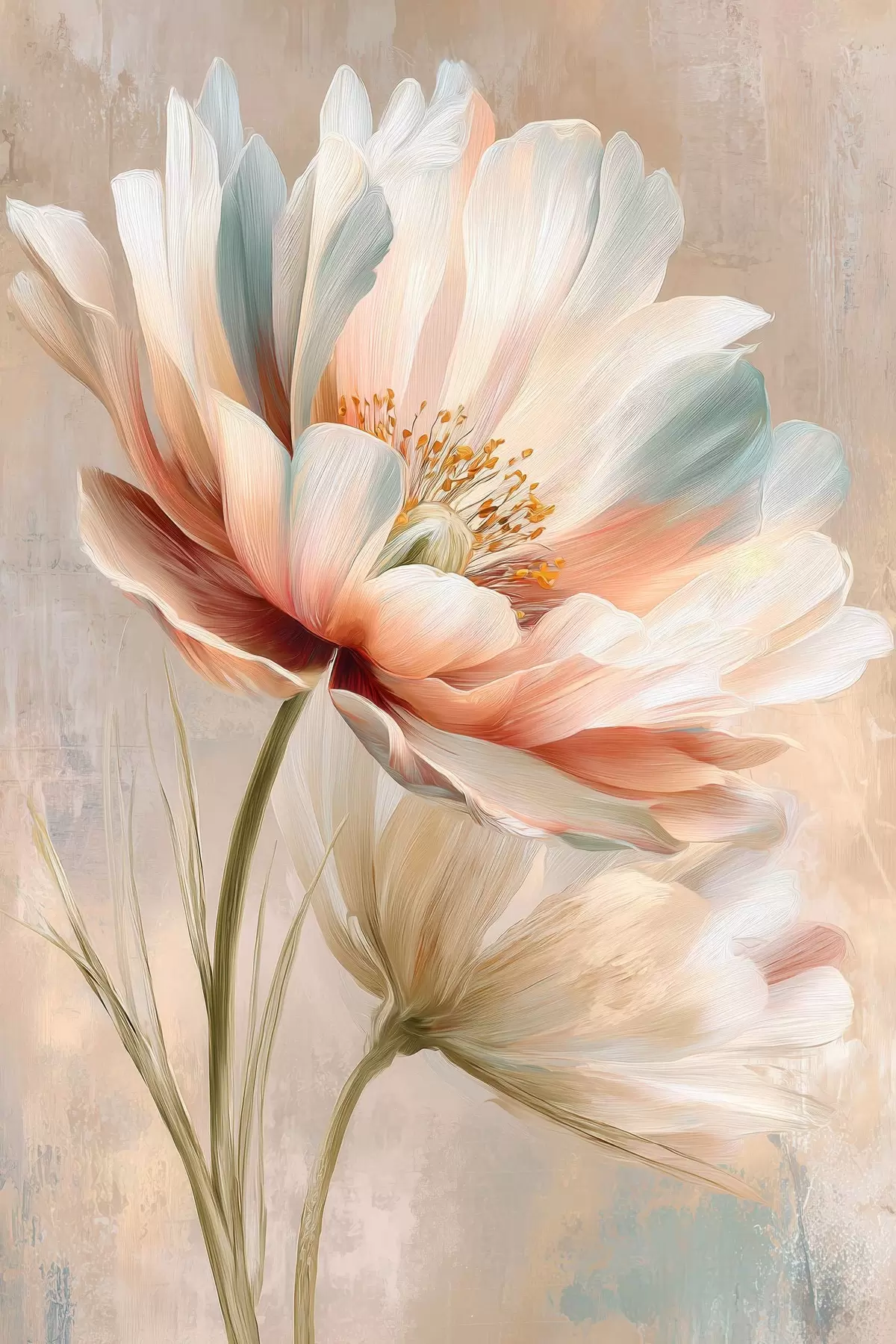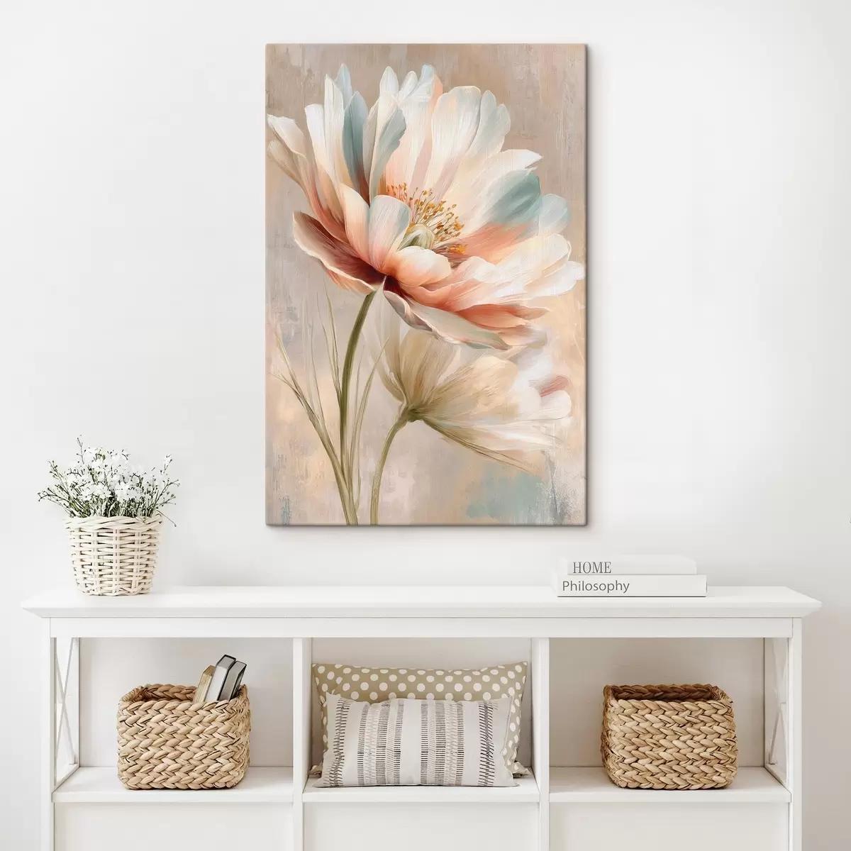 Picture Delicate peonies in beige and coral palette in oil painting style Nr s48184