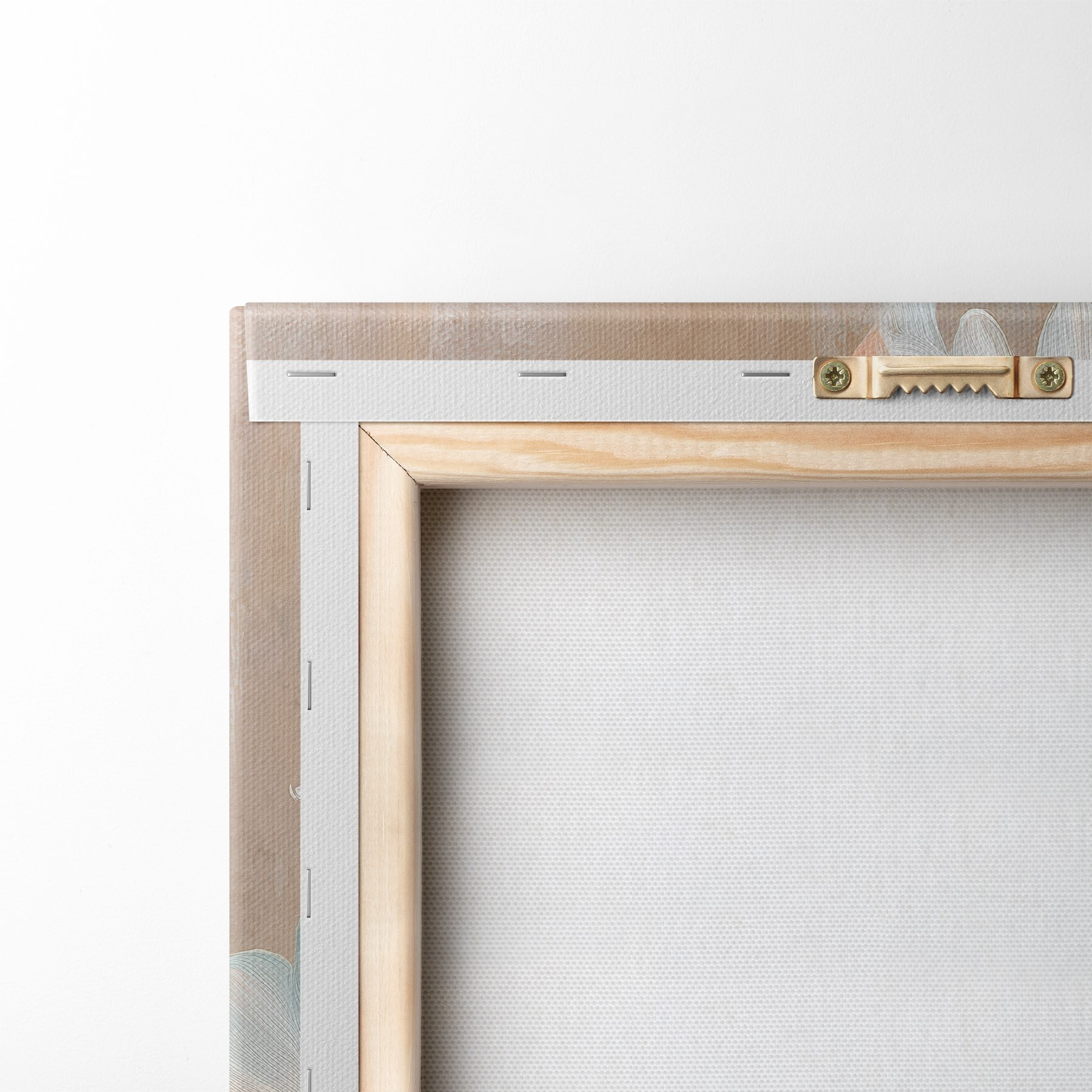 To stretch the canvas on stretcher bars without damaging the image, we use mirrored image.