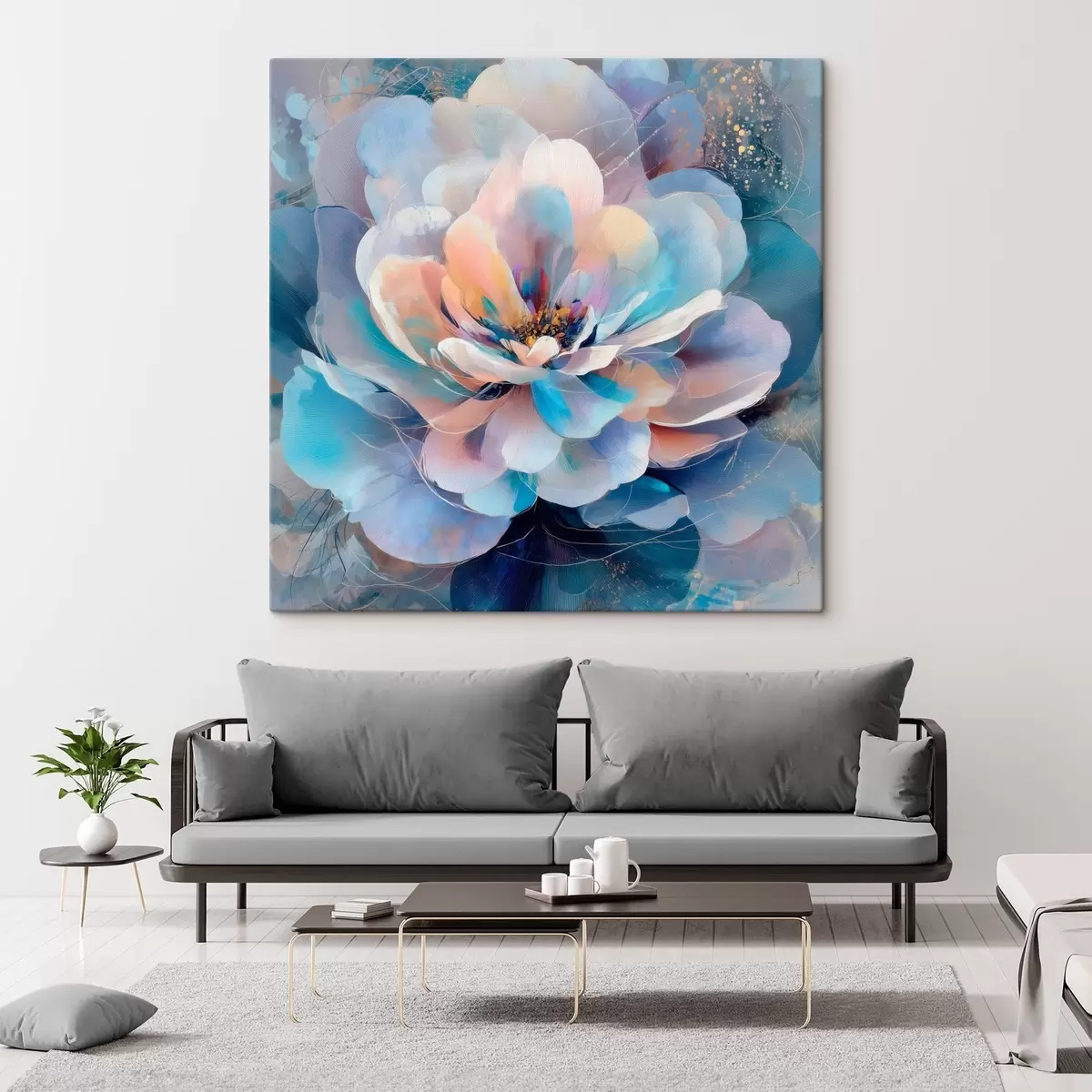 wall murals Abstract flower in pink and blue palette in contemporary painting style s48185