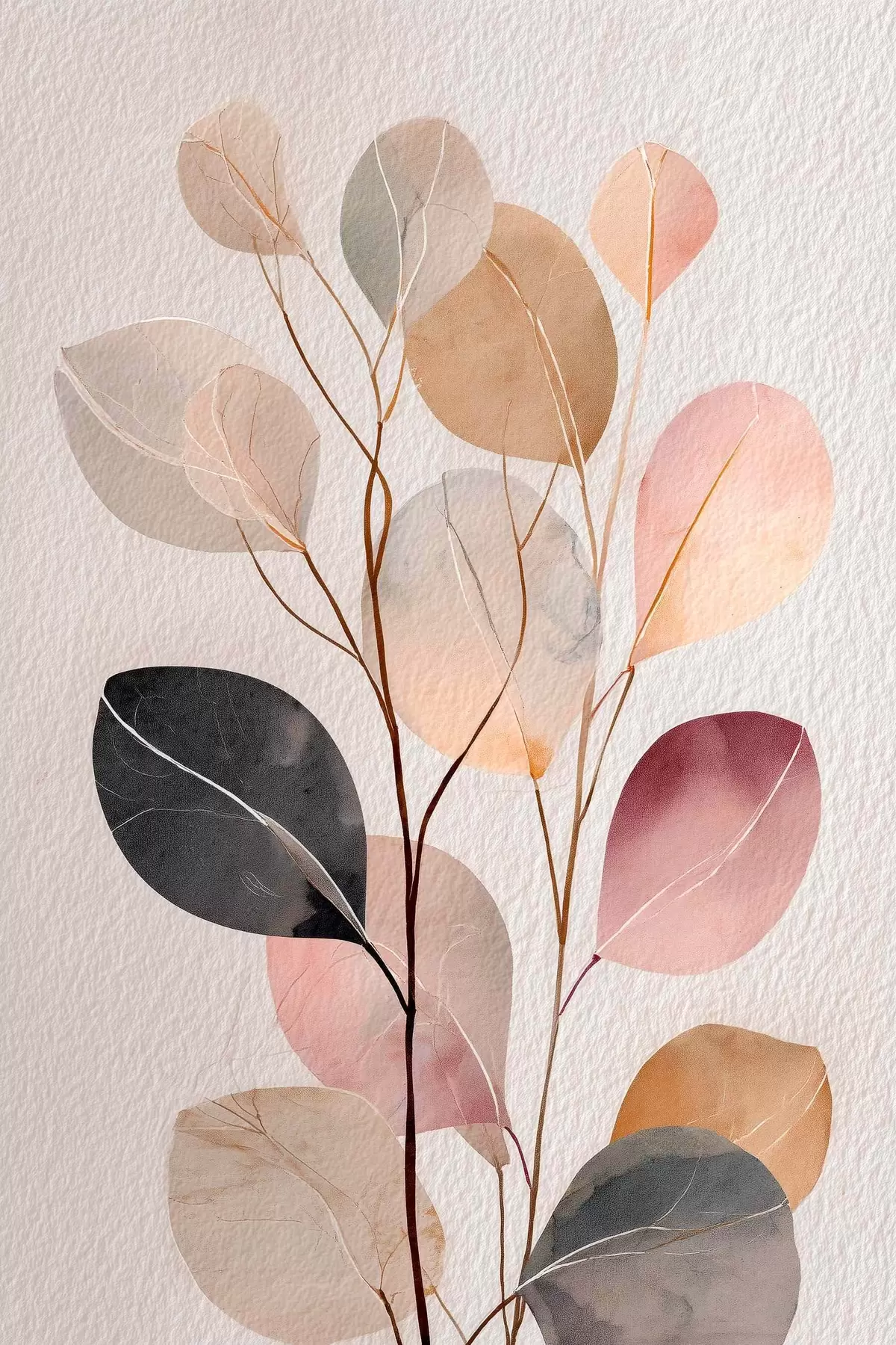 Picture Abstract branch in beige and coral tones in watercolor style Nr s48188