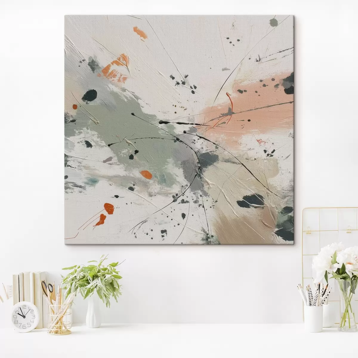 The painting can be hung immediately after receiving it. The painting will be stretched on 2 cm wide wooden stretcher.