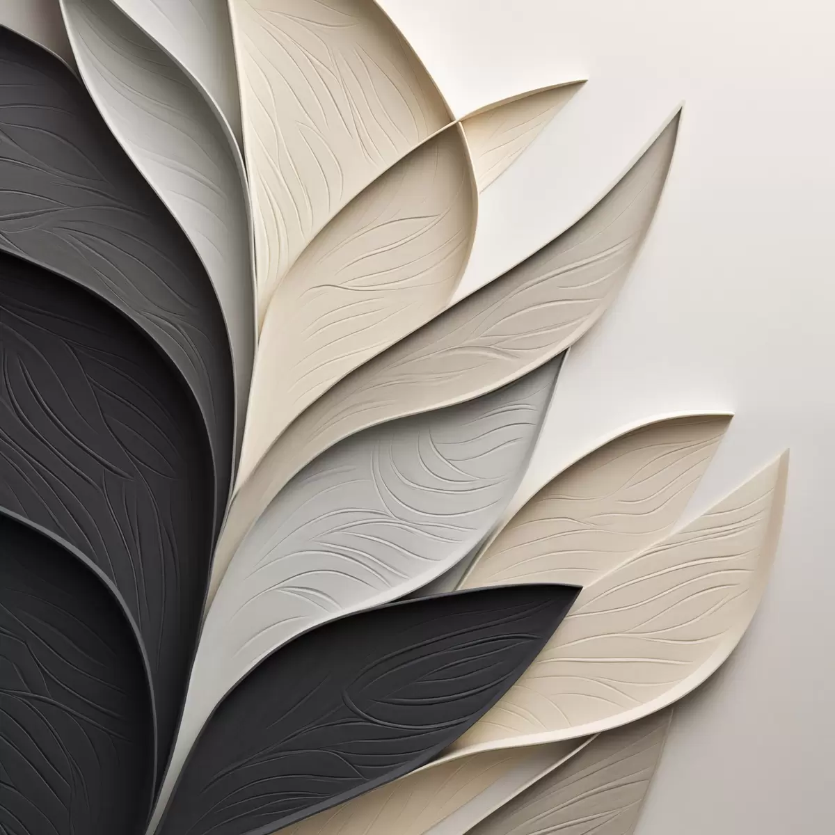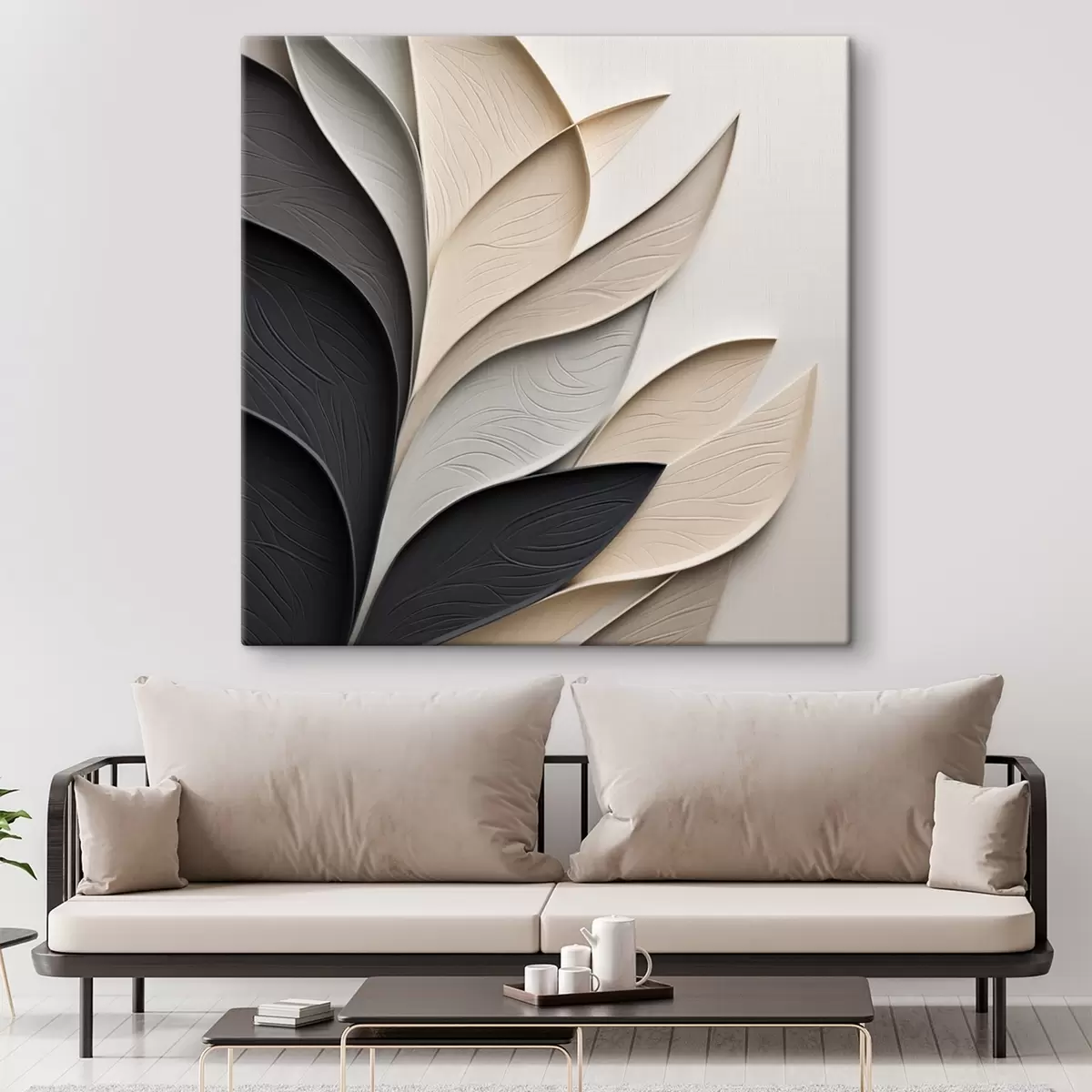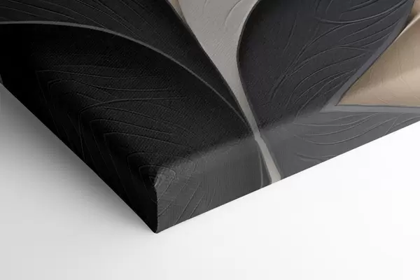 Picture Abstract composition of layered leaves, curved shapes in black, white and beige, textured art Nr s48382