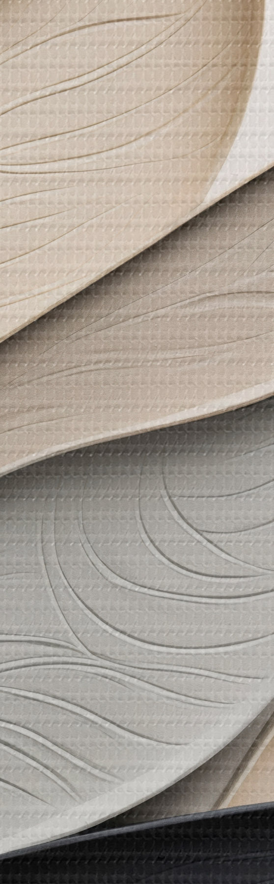 wall murals Abstract composition of layered leaves, curved shapes in black, white and beige, textured art s48382