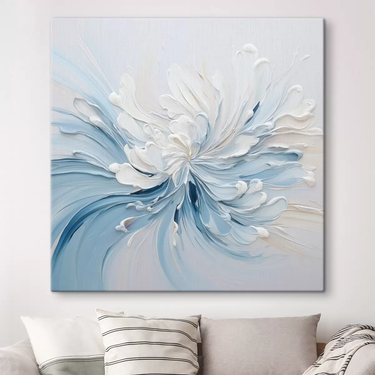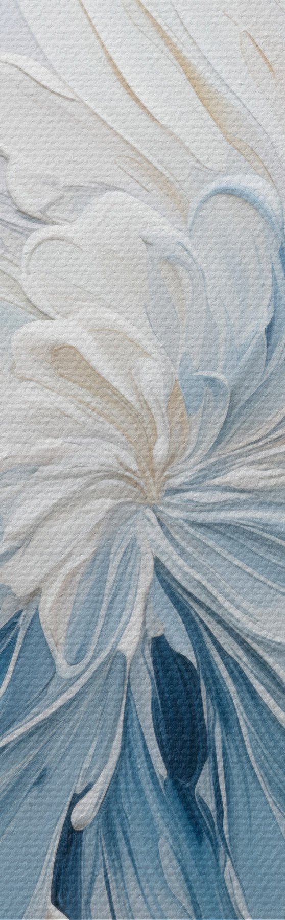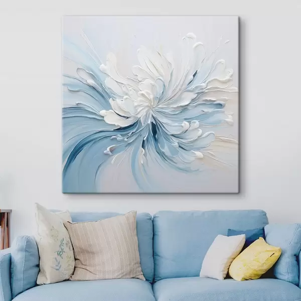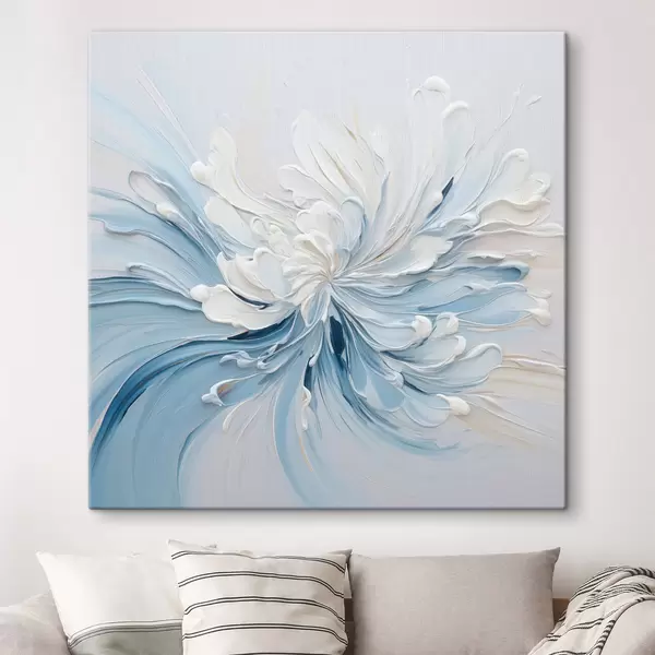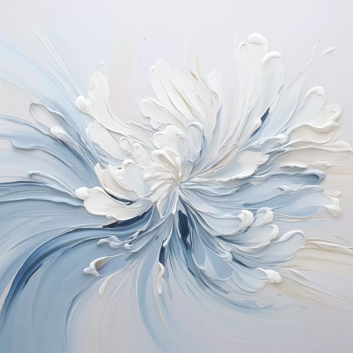 Picture A white and light blue abstract floral design with textured petals and swirling lines Nr s48396