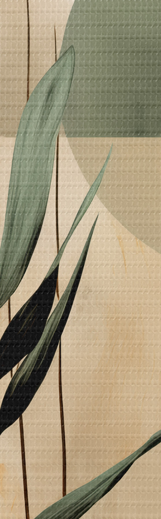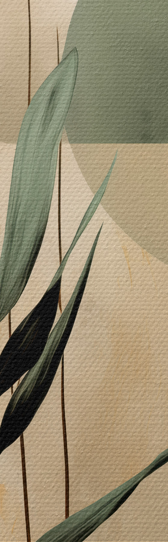 wall murals A dark green plant with abstract geometric shapes and watercolor textures in beige and green s48409