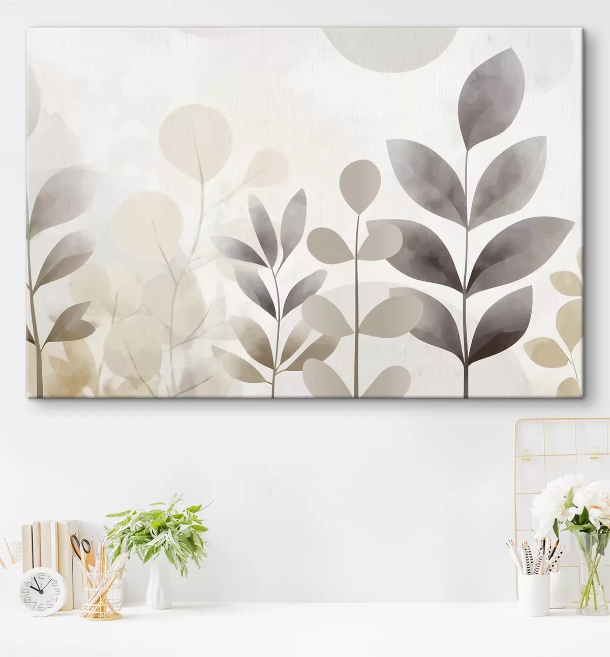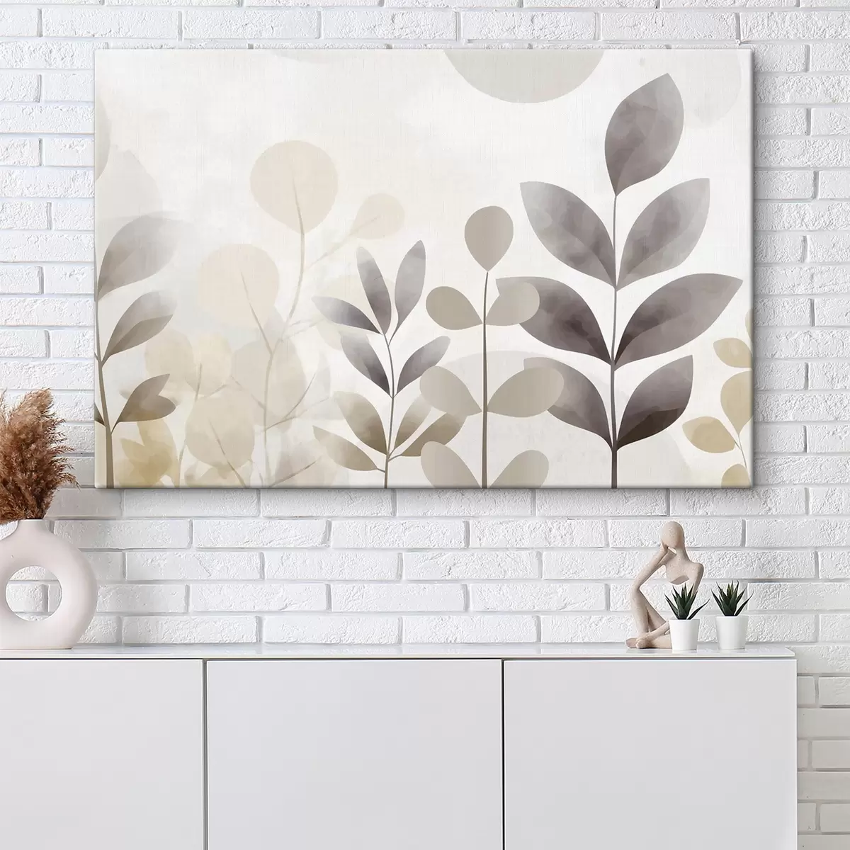 Picture Beige and gray leaf silhouettes, minimalism Nr s48487