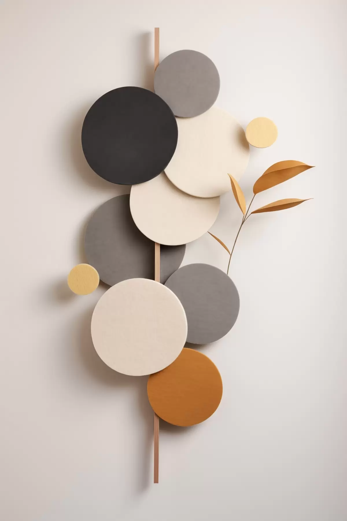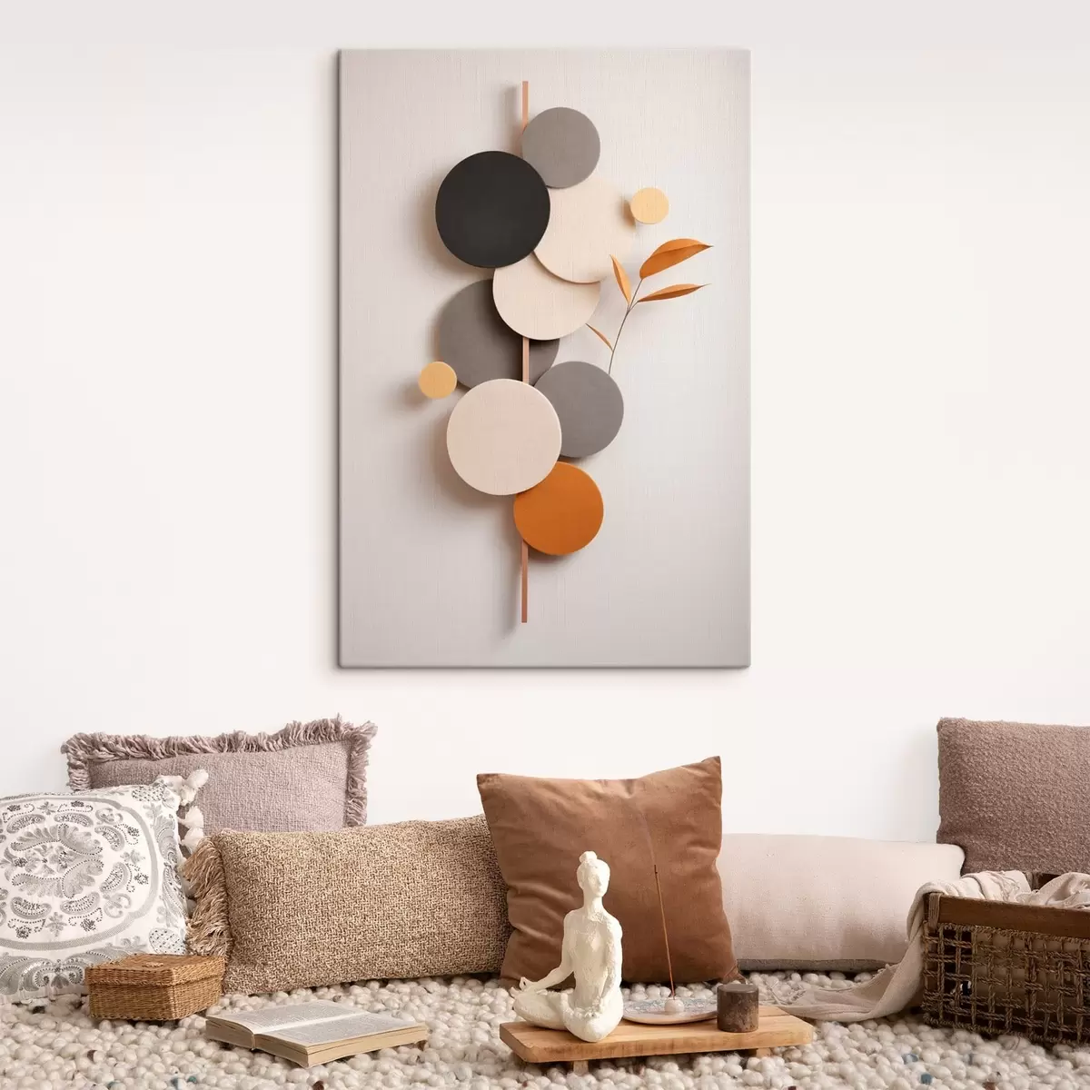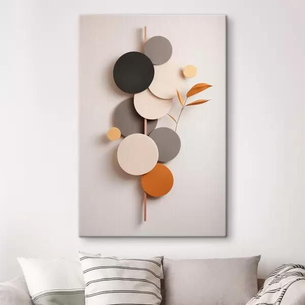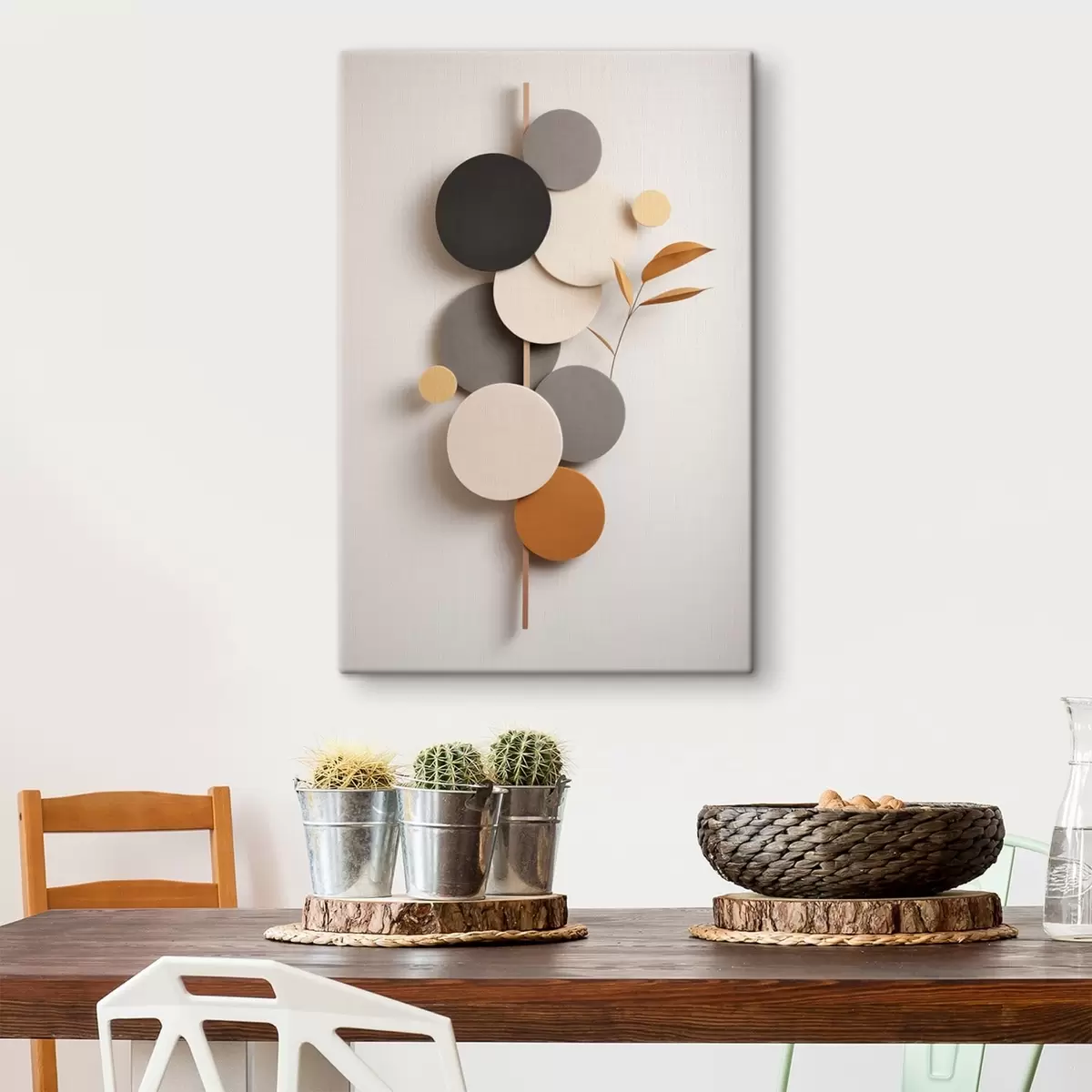 Picture Abstract circles with leaves in neutral tones Nr s48602