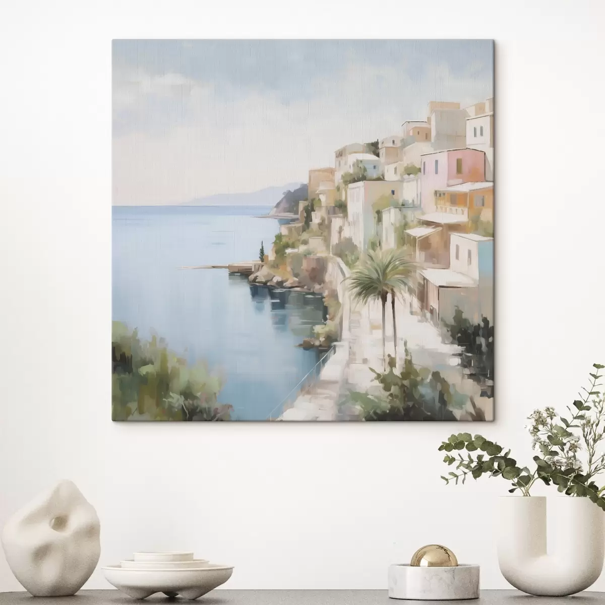 wall murals Landscape of a city by the sea, imitation of painting s48674