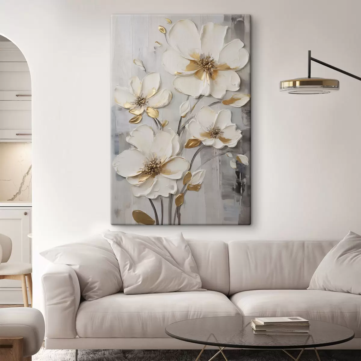 Picture White flowers with yellow accents on a textured background Nr s48721