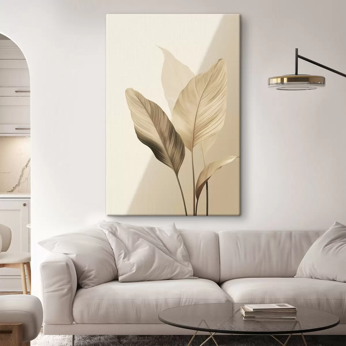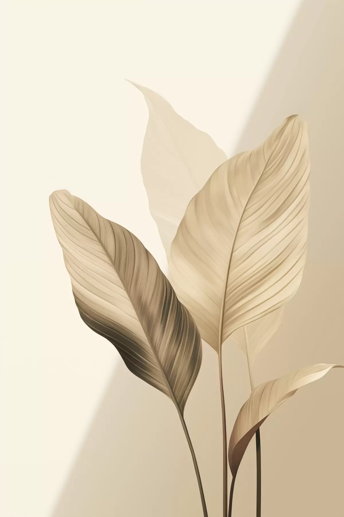 Picture Large tropical leaves in shades of beige and brown, light background Nr s48726