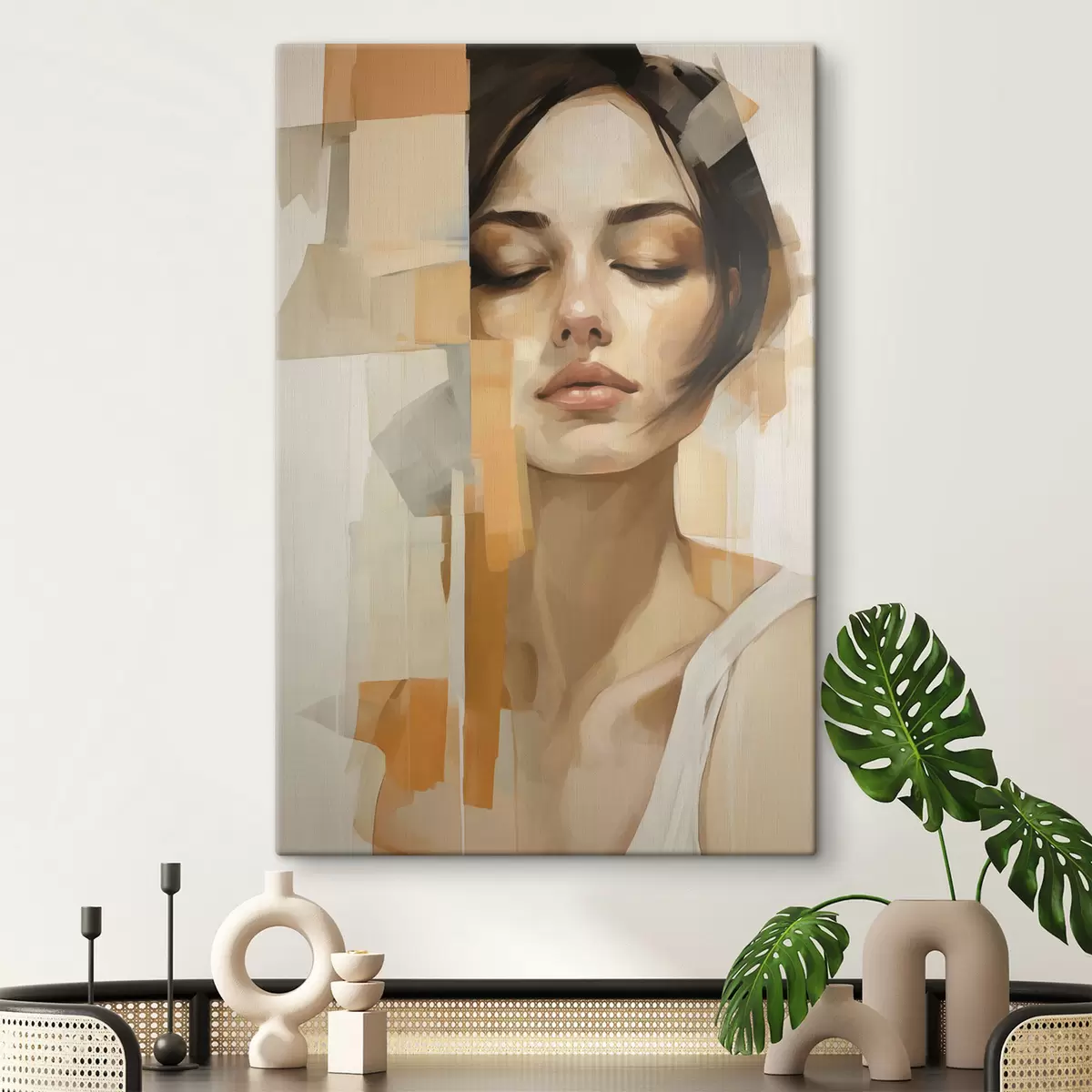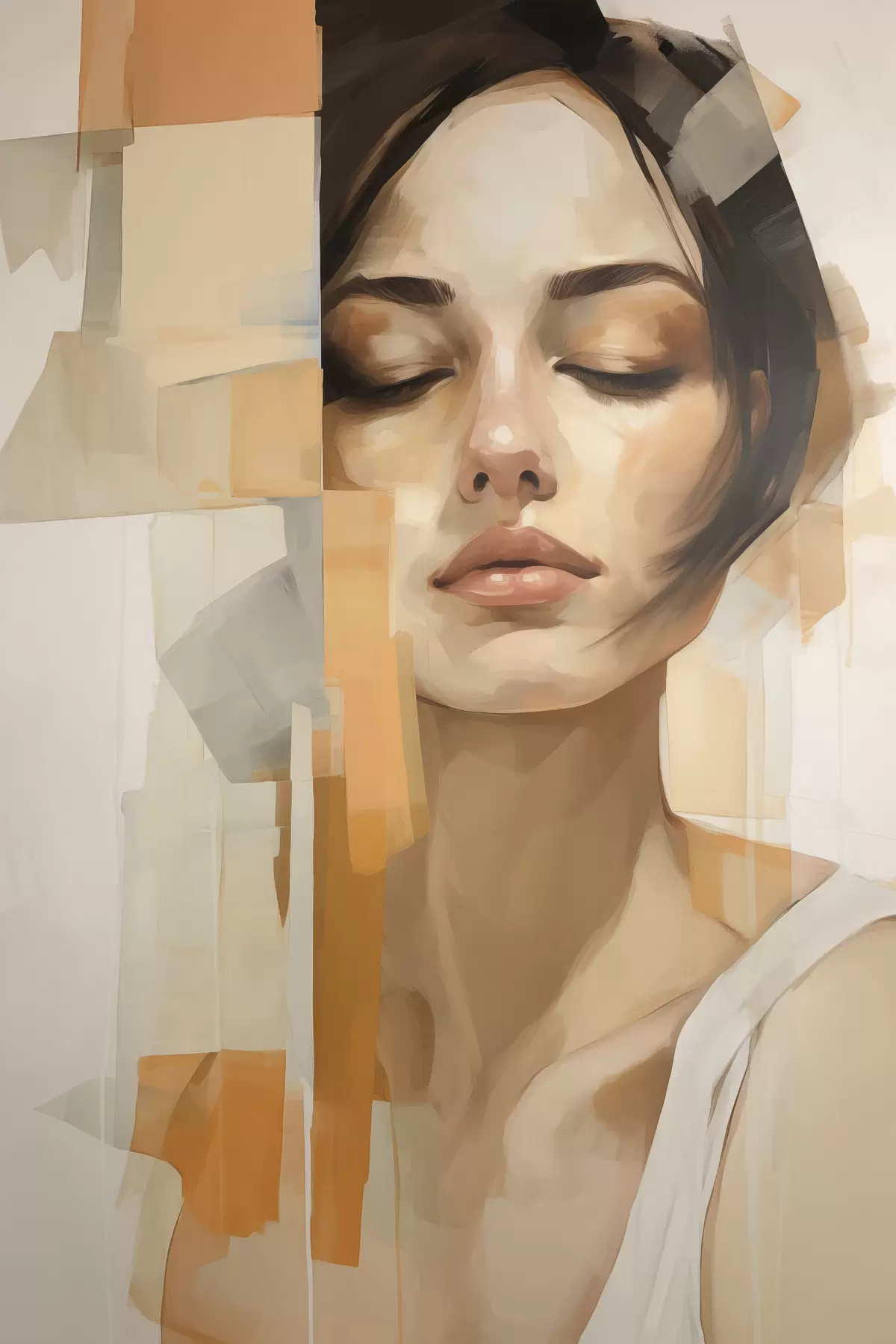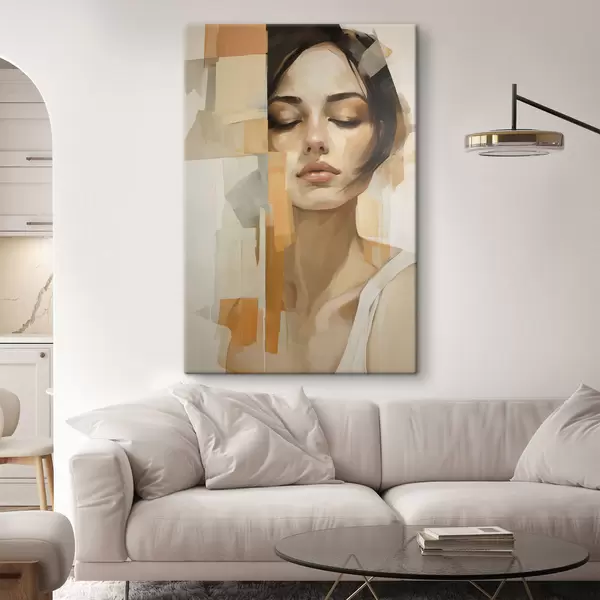 Picture Abstract women portrait with orange and beige shapes Nr s48736