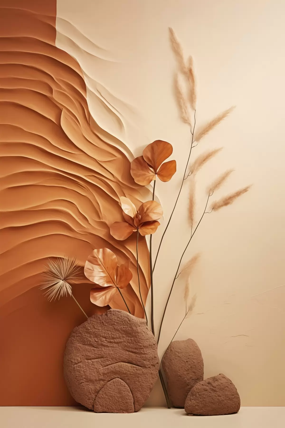 wall murals A minimalist art with dried flowers and pampas grass, textured background s48739