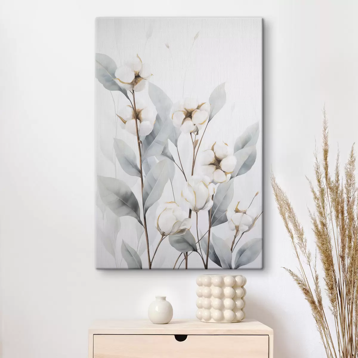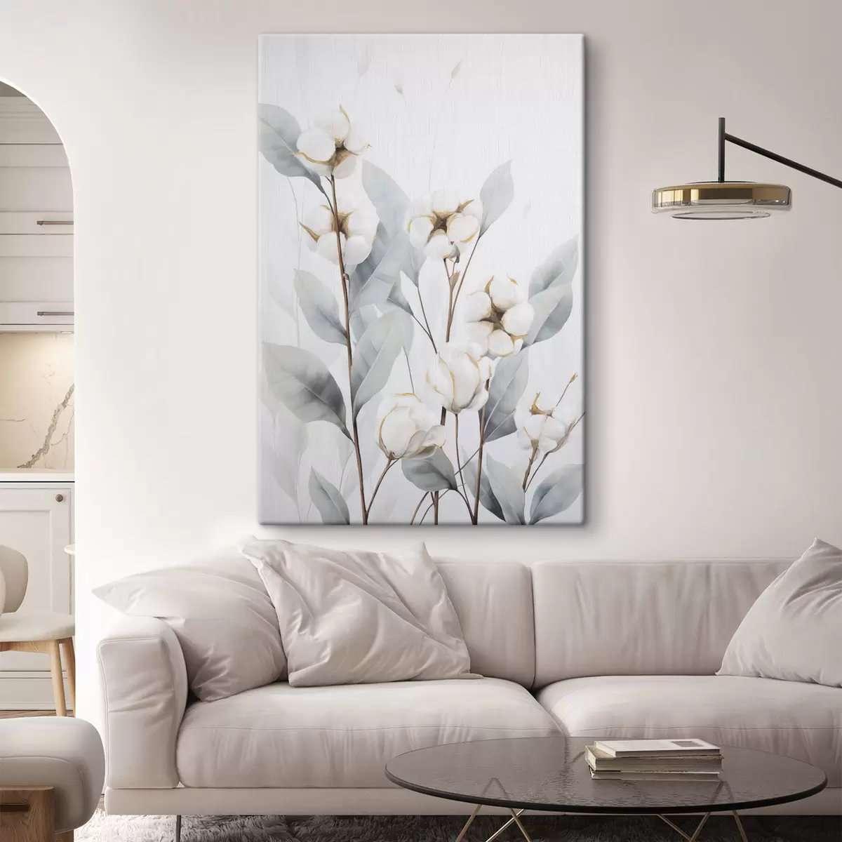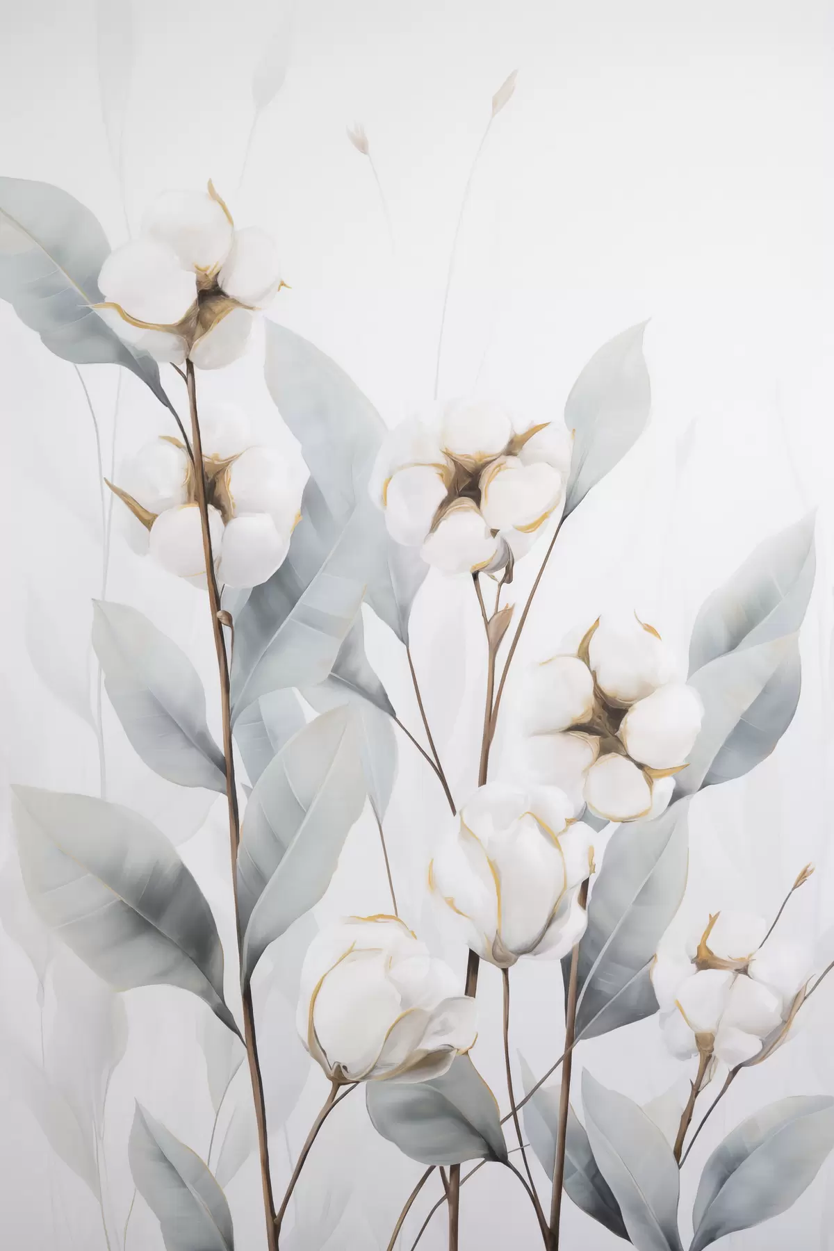 wall murals White cotton plant with pale blue-green leaves against a light background s48744