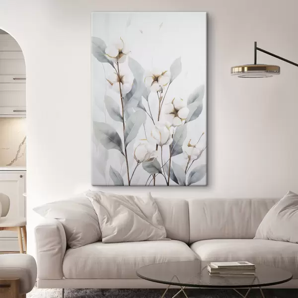 Picture White cotton plant with pale blue-green leaves against a light background Nr s48744